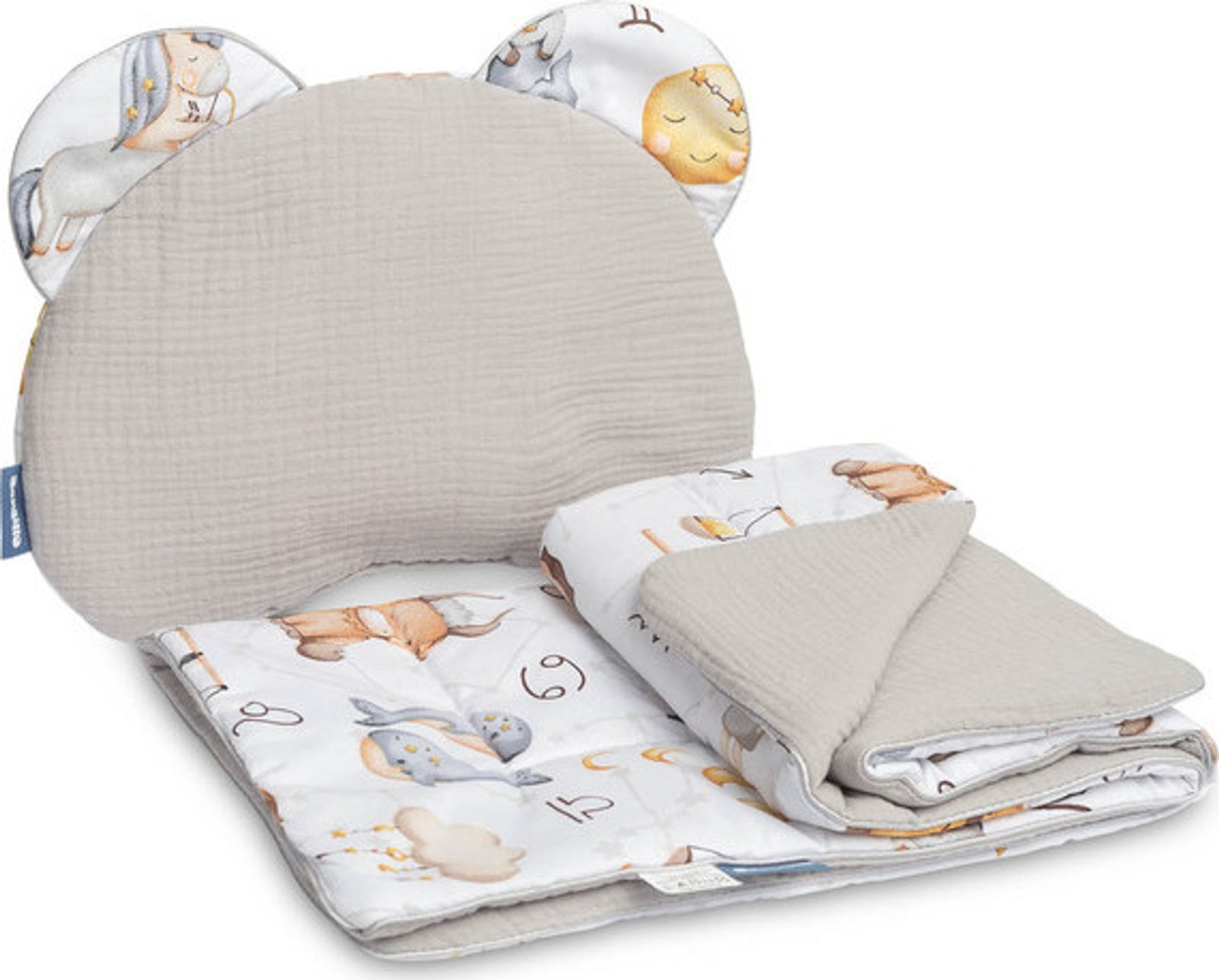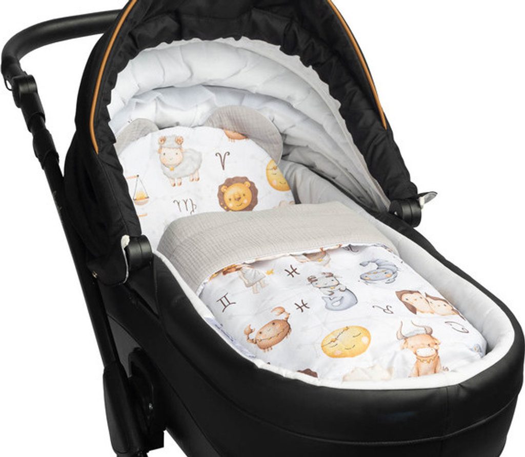 Mušelínový set do kočárku s oušky Zvěrokruh, šedá