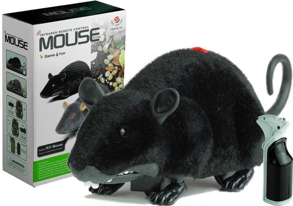 Černá myš na hraní se ovládá infračerveným dálkovým ovladačem , což umožňuje zábavu plnou dovádění po celém bytě. Zvířátko má na spodku kolečka, díky kterým se velmi efektivně a tiše pohybuje po různých hladkých površích.