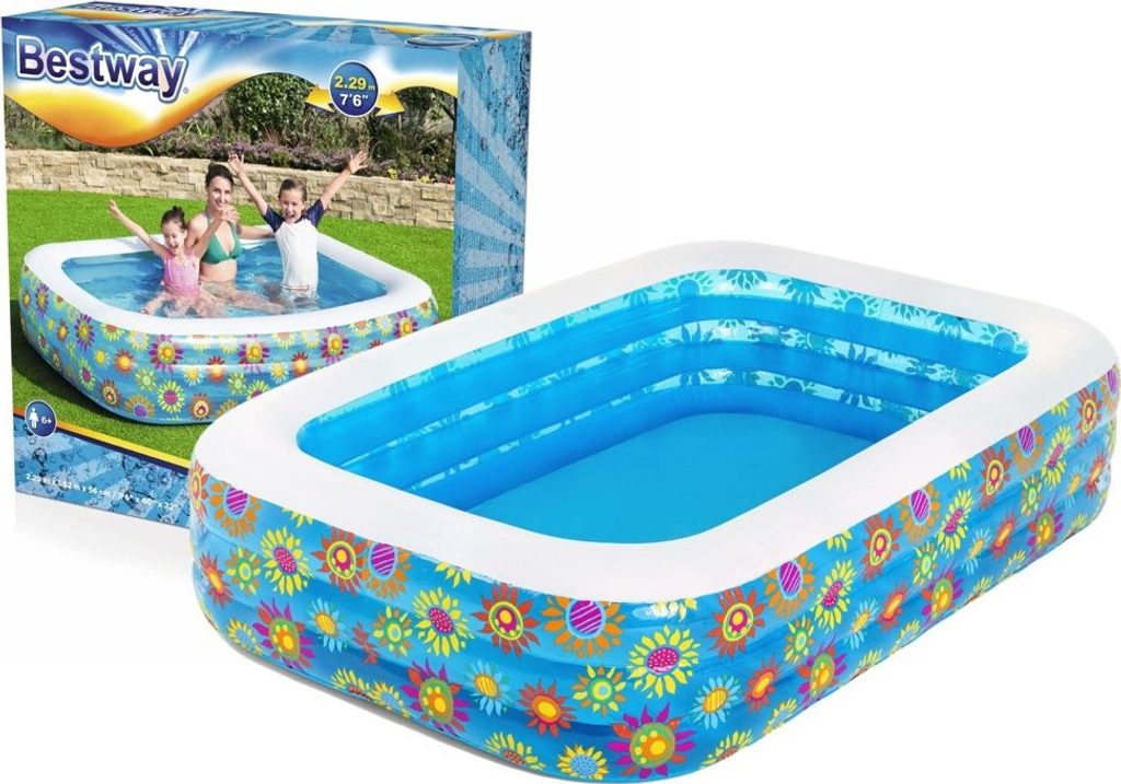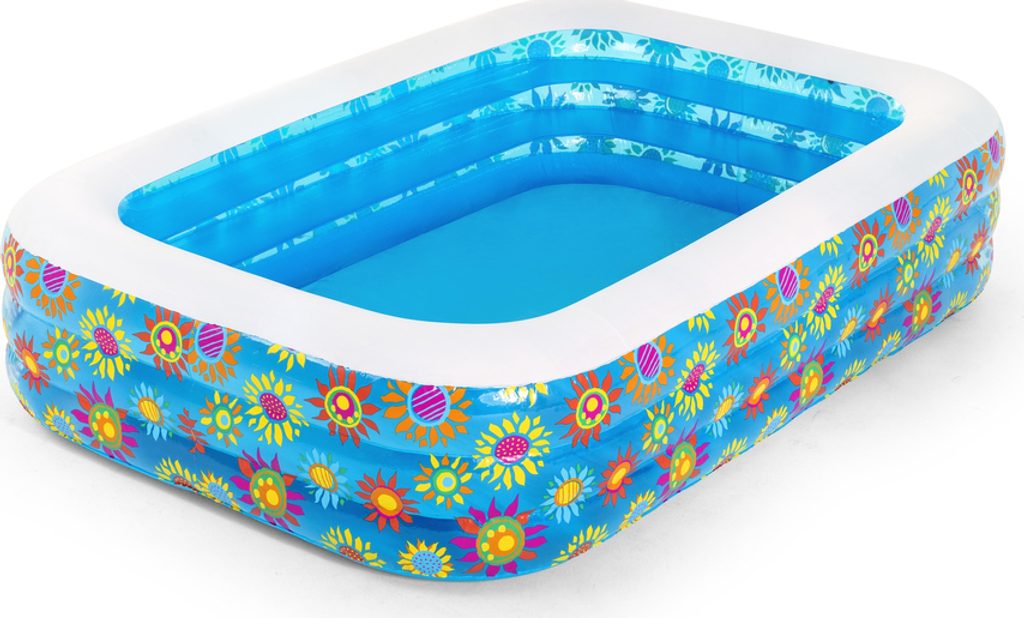 Bazén pro celou rodinu, kde se děti mohou volně koupat. Bazén je lehký, takže jej lze snadno přemístit tam, kde je v danou denní dobu nejtepleji. Má tři nafukovací kruhy a je ideální pro letní rekreaci, umožní vašemu dítěti cvičit a hrát si ve vodě.
