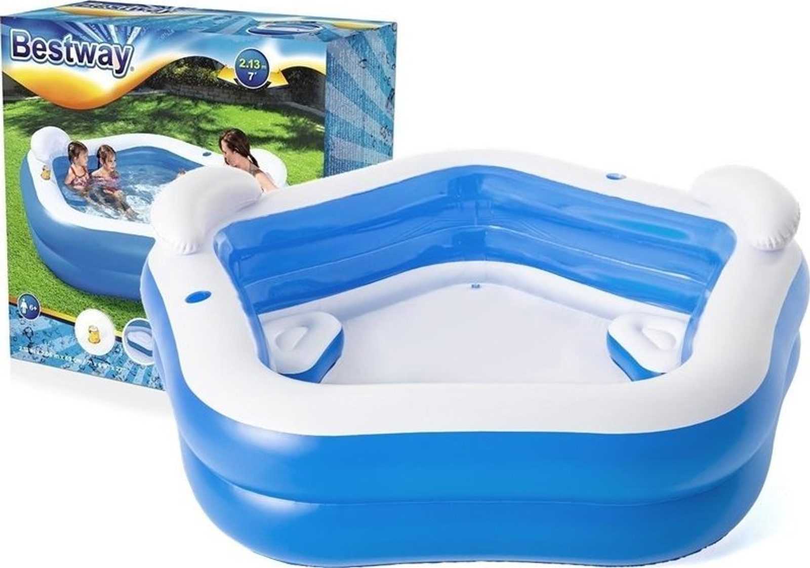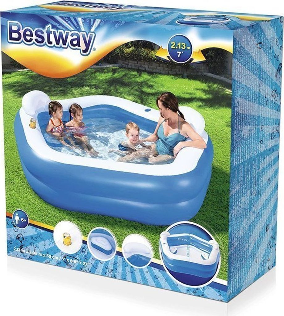 Tento bazén je určen k relaxaci pro celou vaši rodinu a přátele. Jeho speciální tvar a zabudovaná sedadla vám umožní klidnou relaxaci v pohodlí vašeho domova. Jeho konstrukce je stabilní a stěny poskytují pohodlnou oporu pro vaše záda. Je vyrobena z odolného vinylu odolného proti poškození. Kromě bazénového sedátka jsou k dispozici také opěrky hlavy, které zlepšují úroveň vaší relaxace.