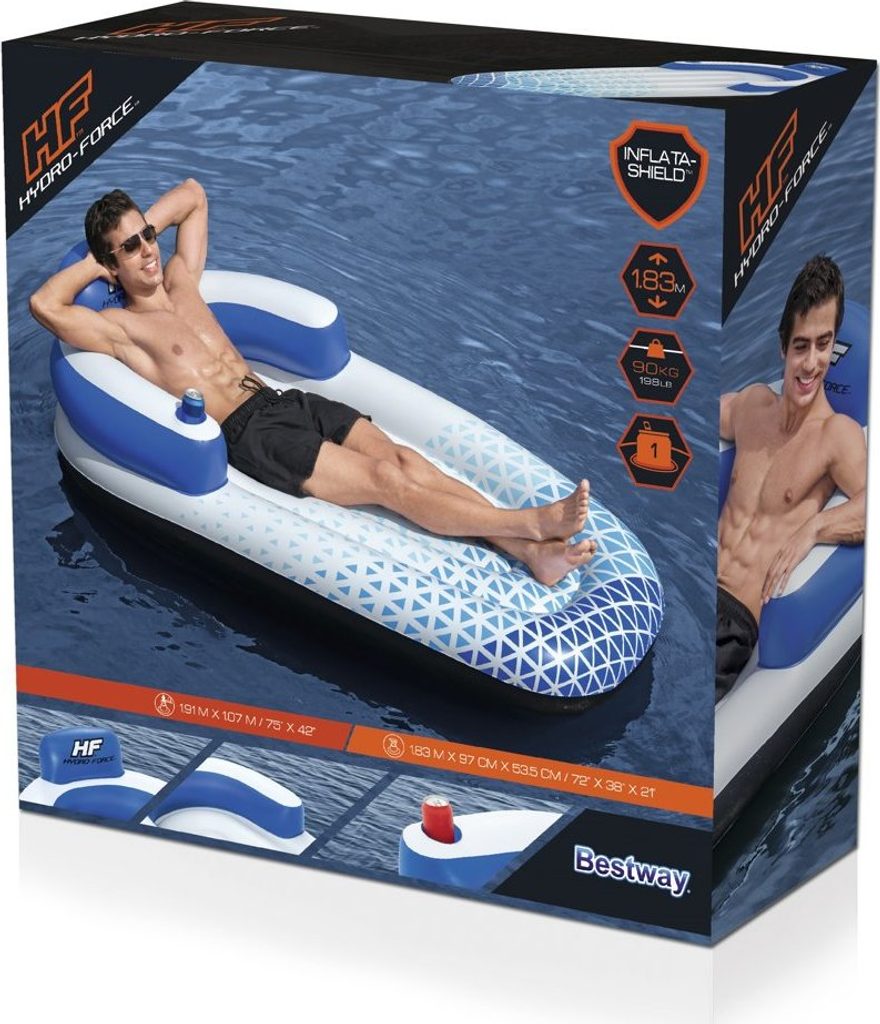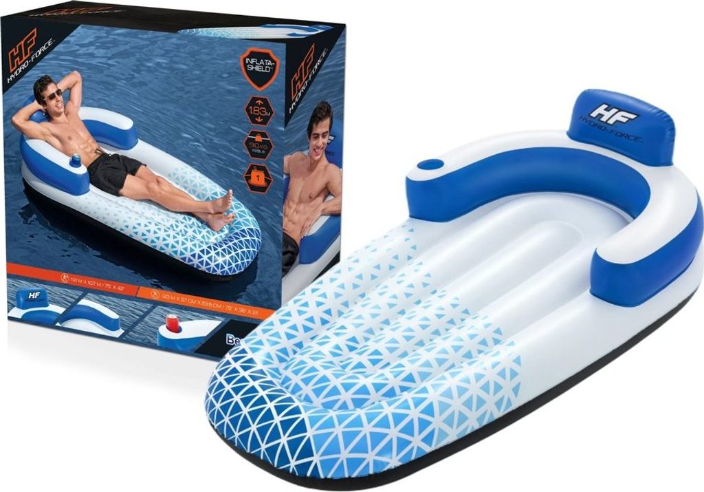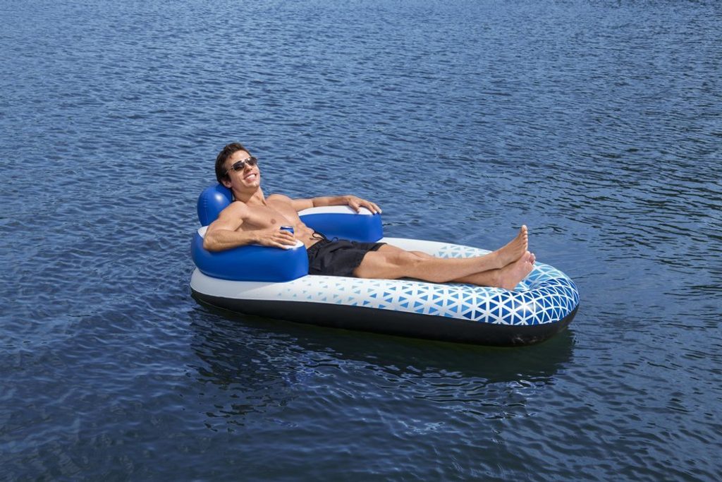 Velmi pohodlná a praktická matrace se bude hodit všem milovníkům vody i pobytu na pláži. Matraci lze použít jako klasickou matraci na plavání nebo také na opalování. Další výhodou, která vám zajistí pohodlí a relaxaci, jsou područky a nafukovací zádová opěrka. Klasická modrobílá barva vás jistě osloví.