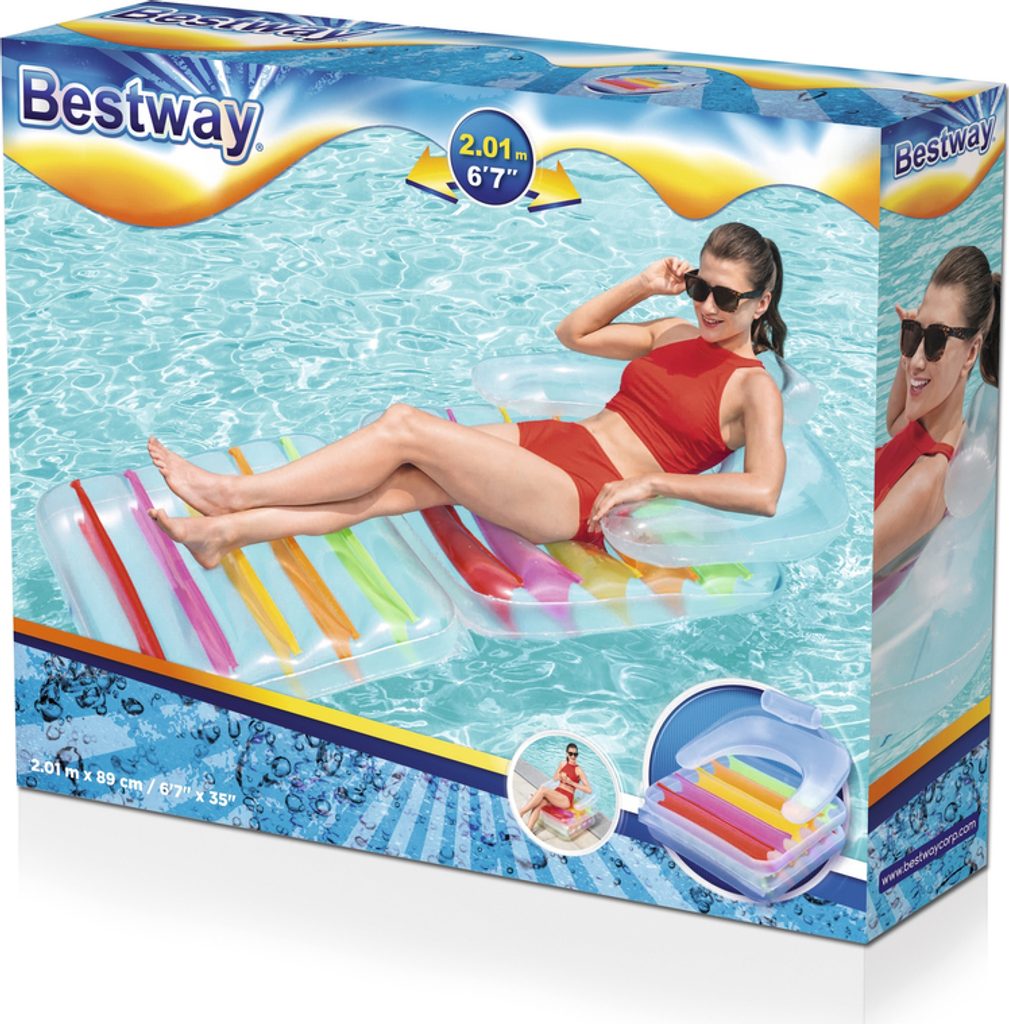 Velmi pohodlná a praktická matrace se bude hodit všem milovníkům vody i pobytu na pláži. Matraci lze použít jako klasickou matraci na plavání, opalování nebo jako sedací křeslo. Další výhodou, která vám zajistí pohodlí a relaxaci, jsou područky a nafukovací zádová opěrka.