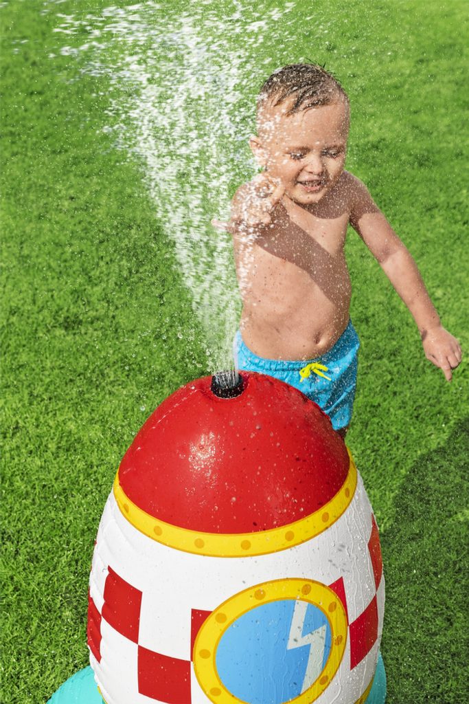 Velká nafukovací raketa s rozprašovači umožní dětem prozkoumávat a využívat jejich představivost a přitom být aktivní a bavit se venku. Nyní můžete zapomenout na nudné zavlažovače. Do zábavy se mohou zapojit i dospělí. Ideální na večírky, setkání a letní dny, děti si s tímto zavlažovačem vytvoří vzpomínky na celý život.