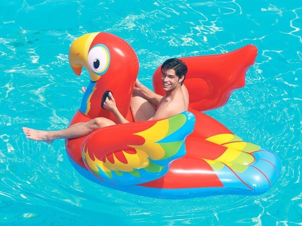 Nafukovací matrace Papoušek je skvělý způsob letního odpočinku. Krásné barvy a originální tvar jistě potěší všechny milovníky vodní relaxace. Zpestří letní hry a umožní vám relaxovat. Papoušek má dvě stabilní rukojeti na obou stranách a široké sedátko, které zajišťuje stabilitu a pohodlí při používání. Tento nafukovací plavecký doplněk je vhodný do všech podmínek, ať už u moře, jezera nebo bazénu. Je vyroben z odolného vinylového materiálu o tloušťce 0,32 mm, díky čemuž je odolný proti mechanickému poškození i poškození, které může způsobit sluneční záření nebo mořská voda.