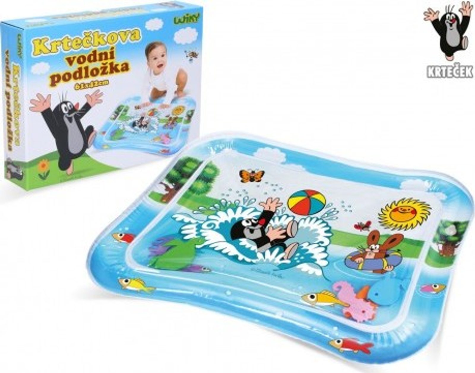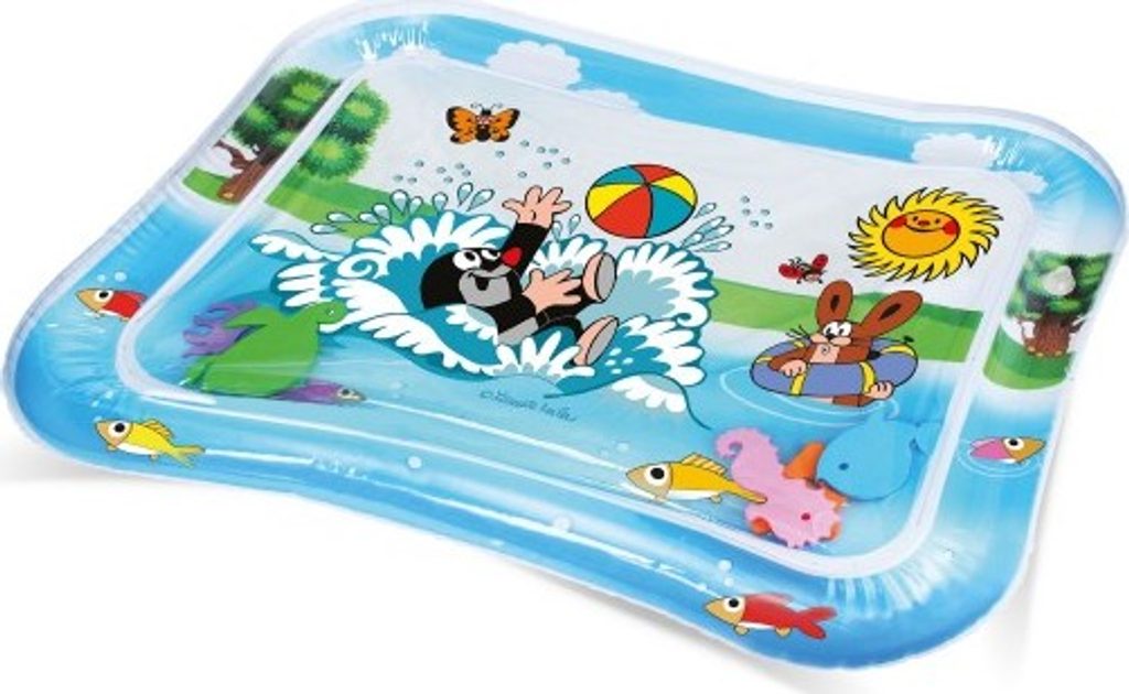 Nafukovací vodní smyslová podložka pro hru na bříšku, je vhodná pro nejmenší děti. Stačí nafouknout okraj podložky a střed naplnit vodou. Podložka podporuje správný vývoj svalů krku, hlavy, břicha a zad dítěte. Trénuje motorické schopnosti, podporuje koordinaci očí a rukou. Rozvíjí představivost smysly a schopnost soustředit se. Učí rozlišování tvarů, barev a textury materiálu. Podložka je skladná a nenáročná na údržbu, je tak vhodná i na cesty. Rozměr podložky: 61 x 42 cm. Rozměr balení: 25 x 20 x 5 cm. Vhodné pro děti od 6 měsíců