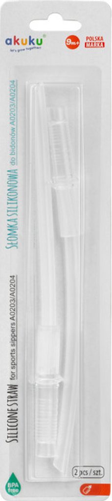 Sada 2 vyměnitelných silikonových brček pro lahve na vodu "akuku", katalogové číslo A0203 a A0204.