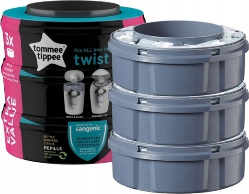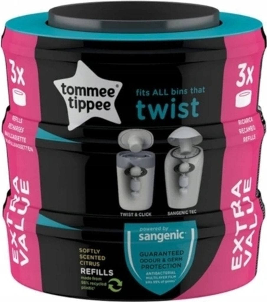 Kazeta do koše Tommee Tippee Sangenic TWIST uzavírá bakterie a pachy do špičkové vícevrstvé antibakteriální fólie.