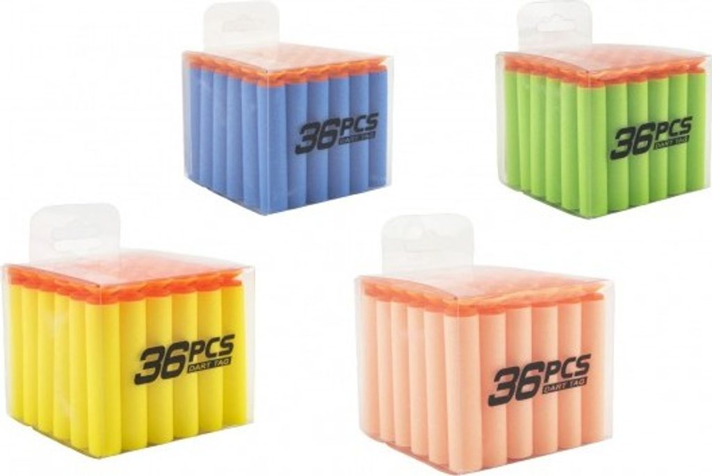 Sada nábojů, které pasují do pistolí na pěnové náboje. S těmito náboji vás nikdo nepřemůže. Noste je stále při sobě, třeba za opaskem. Balení obsahuje 36 kusů náhradních šipek. Náboje jsou vyrobeny z pěnové hmoty.