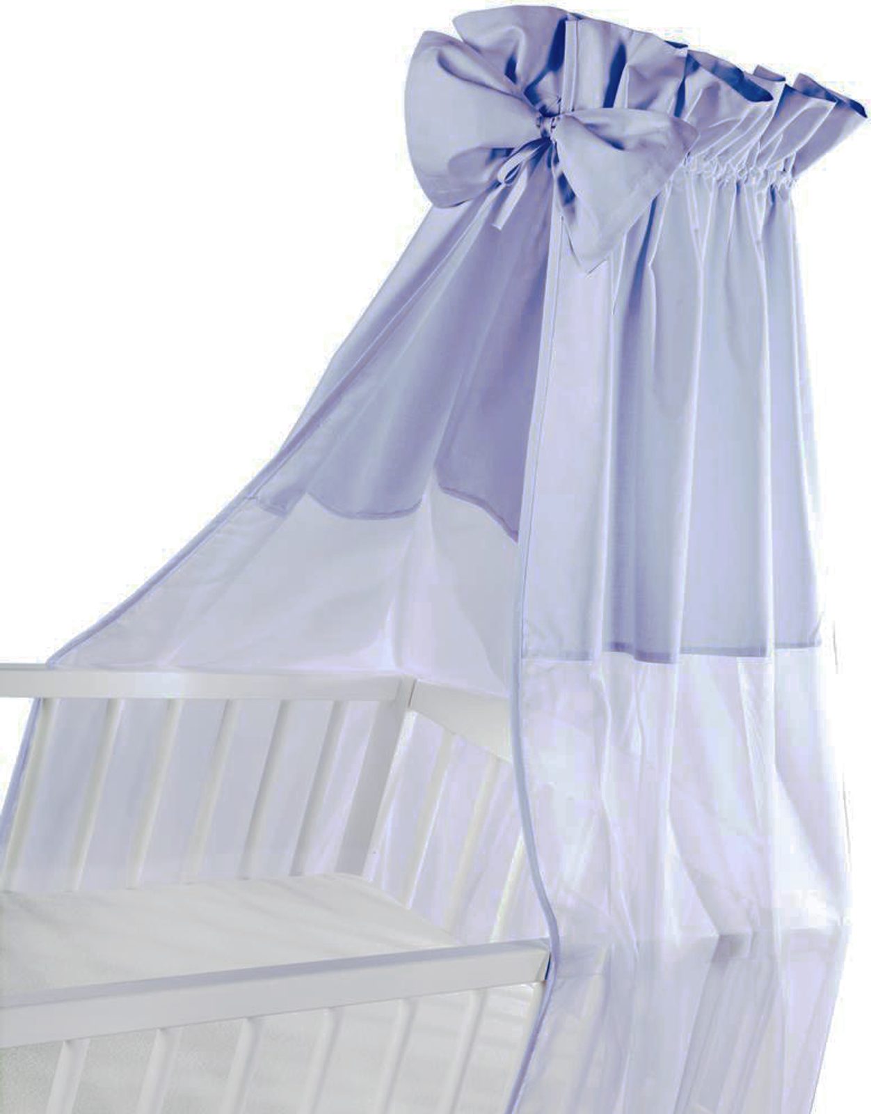 Nebesa Klups univerzální modrá jeans. Horní část nebes je vyrobena ze 100% bavlny, spodní část je vyrobená z bílé průsvitné organzy (šifonu). Nebesa se umísťují na držák nebes, který není součástí jejich balení a je nutné jej zakoupit zvlášť.