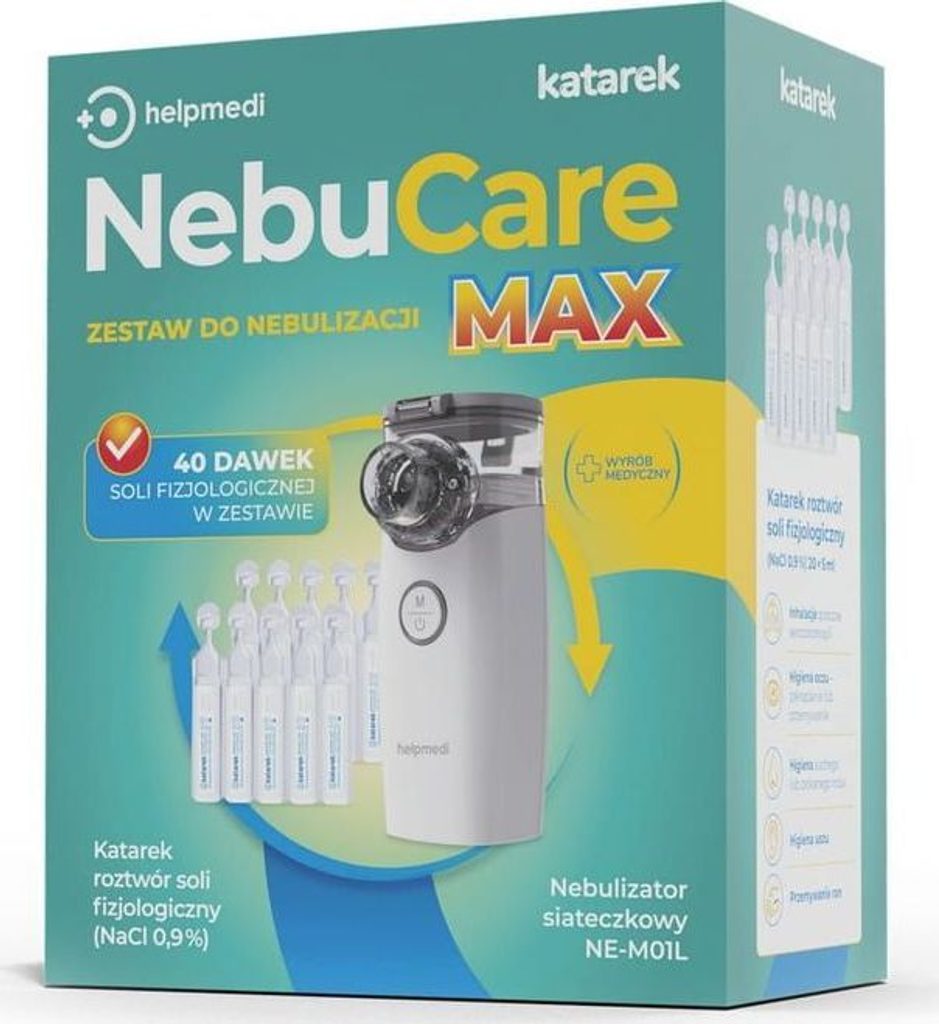 Přístroj sám velmi přesně dávkuje sůl nebo lék, díky čemuž je léčba rychlejší a efektivnější. Zařízení se snadno používá, je malé a bez zbytečných kabelů. Síťový nebulizér je nehlučný - dobře poslouží při nebulizaci dětí, které často špatně reagují na všechna ošetření. Sada obsahuje dvě masky: malou - pro malé děti a velkou - pro starší děti a dospělé, což ze sady dělá řešení pro celou rodinu.