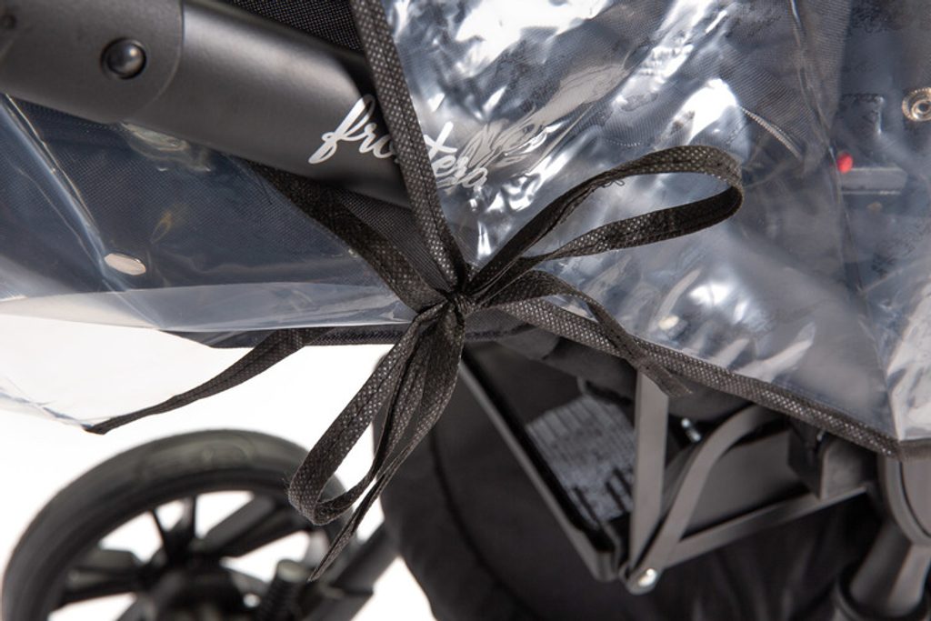 Pláštěnka chrání kočárek i dítě před nepřízní počasí. Vyrobeno ze silné fólie, zcela bezpečné pro dítě, odolné vůči vysokým i nízkým teplotám. Má výřez pro kontakt s miminkem. Fólie byla testována Národním hygienickým ústavem z hlediska kvality materiálů a zpracování. Potah je k dispozici ve třech verzích, aby dokonale seděl na typ kočárku.