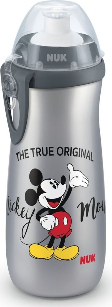 NUK Sports Cup Disney Mickey Mouse s objemem 450 ml je dokonalým společníkem při hře i sportu. Praktický sportovní náustek se snadno otevírá a zavírá. Náustek je vyroben z průhledného silikonu, který je odolný a hygienický. Lze jej mýt v myčce na nádobí. Pomocí užitečného klipu lze hrnek připevnit například na batoh, takže dítě má obě ruce volné.