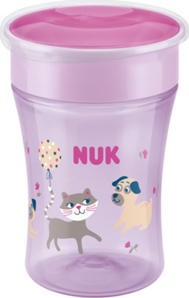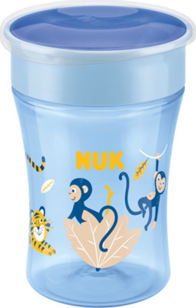 Mnoho rodičů by občas rádo pomocí kouzla naučilo své dítě samostatně pít z hrnečku. Kouzelný pohár NUK je určen pro děti od 8 měsíců a je neocenitelným pomocníkem v této důležité fázi vývoje. Nový typ "nerozlévajícího" náustku umožňuje pít z obou stran šálku - stejně jako ze sklenice - ale bez rozlití, protože silikonovému těsnění zabraňuje vylití tekutiny. Hrnek má chytrý silikonový náustek, díky kterému je 100% těsný. Dítě, které se učí pít, potřebuje sát pouze z okraje hrnečku. NUK Magic Cup má víčko, které chrání kelímek před nečistotami při přepravě. Kelímek se skládá z malého počtu dílů, snadno se skládá a čistí. Lze jej mýt v myčce na nádobí.