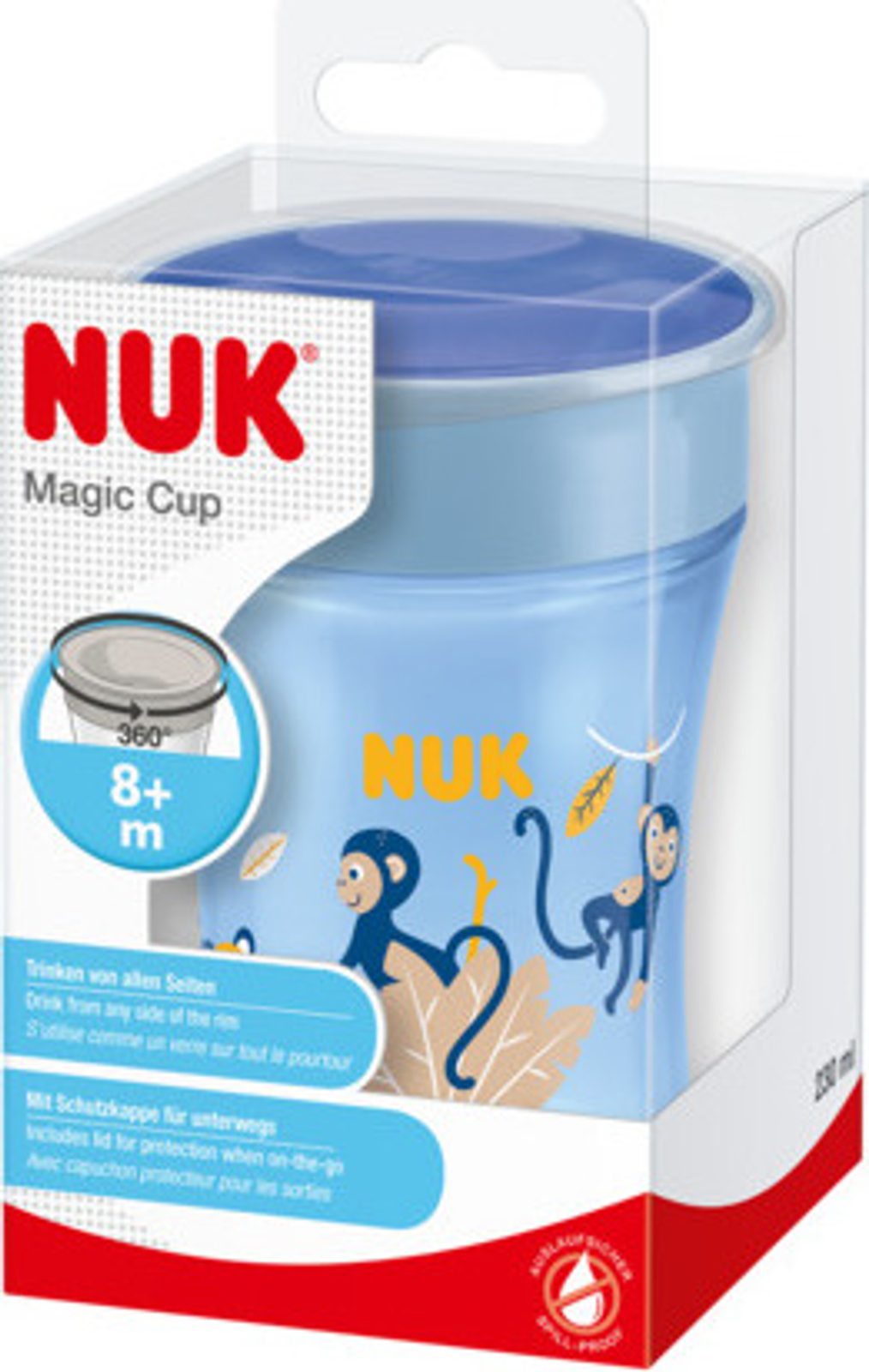 NUK Magic Cup je vyroben z vysoce kvalitního polypropylenu. Je lehký a odolný. Má kapacitu 230 ml a je kompatibilní se všemi kelímky NUK Evolution. Váha umožňuje kontrolovat množství tekutiny. Průhledný hrnek s atraktivními motivy je dostupný ve třech barvách.
