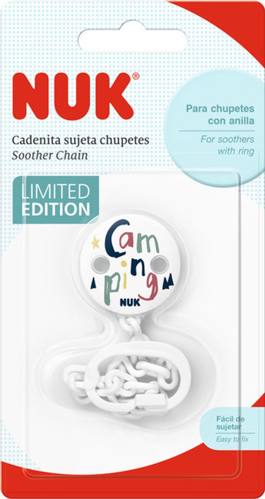 Řetízek na dudlík NUK má pohodlnou sponu pro připevnění na oblečení miminka a klip pro připevnění na rukojeť dudlíku (řetízek je určen pro dudlíky s rukojetí). Spona je pro miminko bezpečná, protože má otvory, které mu umožňují dýchat, pokud si jej dítě vloží do úst. Řetěz NUK je vyroben z vysoce kvalitních plastů - odolný, nerozbitný a dostupný v mnoha provedeních. Řetízky na dudlík NUK jsou nejen praktické, ale také dobře vypadají.