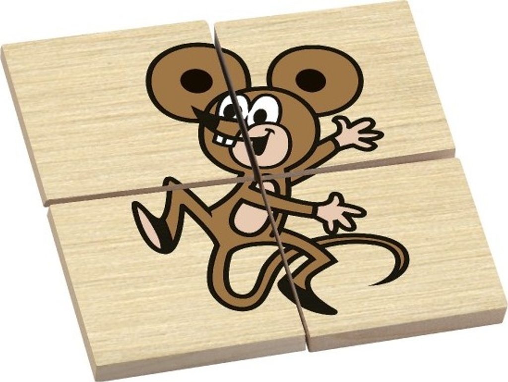 Dřevěné kameny jsou oboustranně potištěné. Z 12 dílků můžete poskládat 6 různých zvířátek.