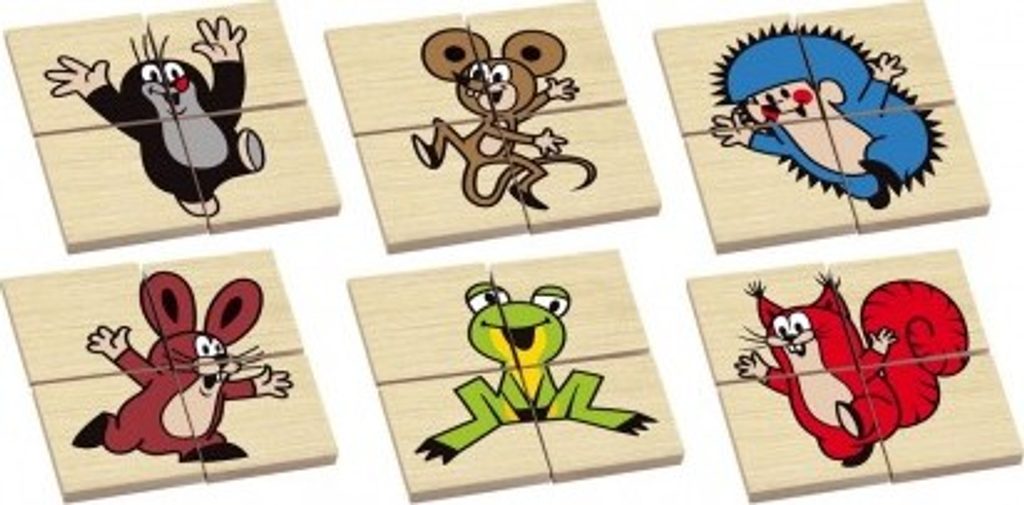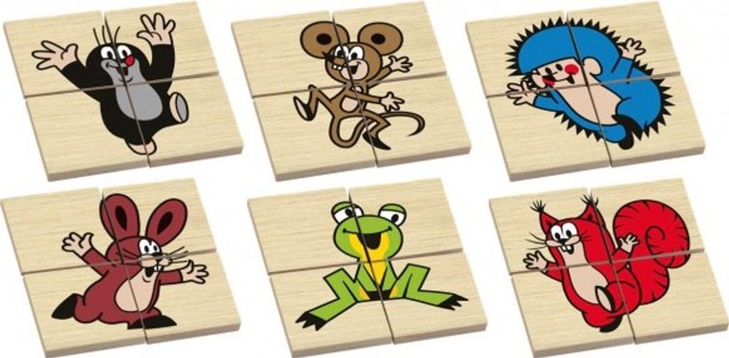 Klasická dřevěná hra pro děti - domino ze dřeva, s motivem Krtečka a jeho…
