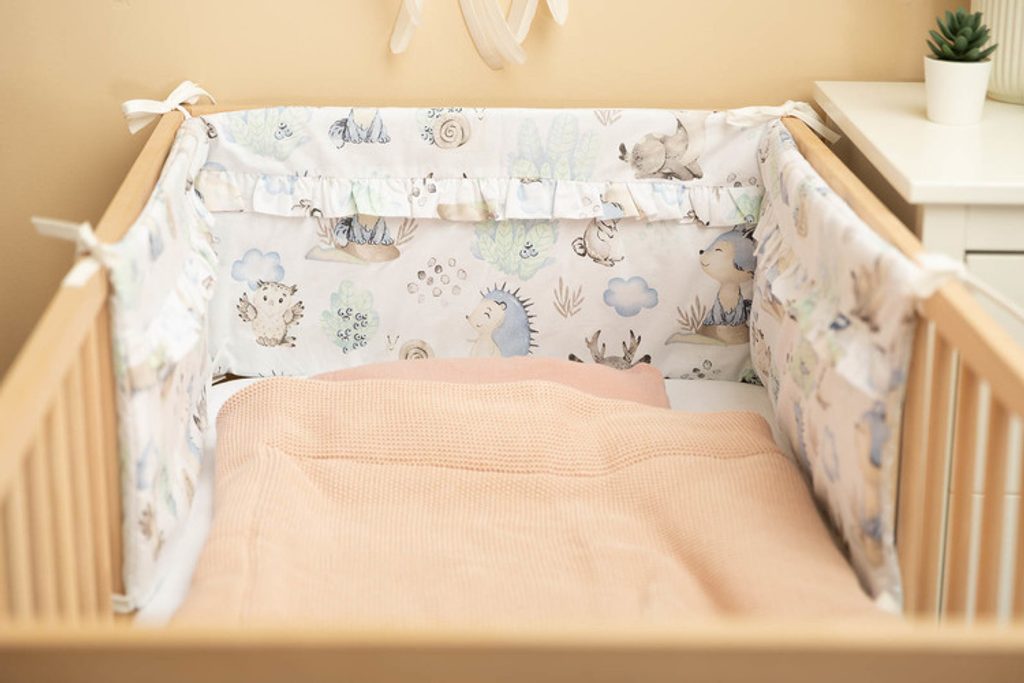 Ochranný mantinel do postýlky Lesní zvířátka, meruňková