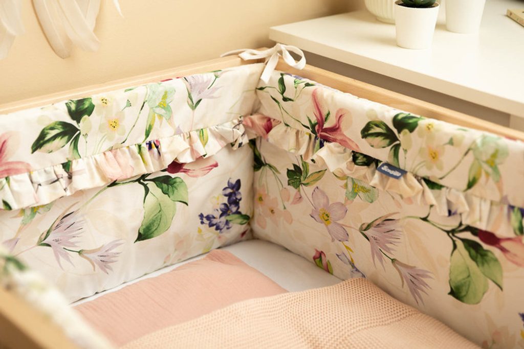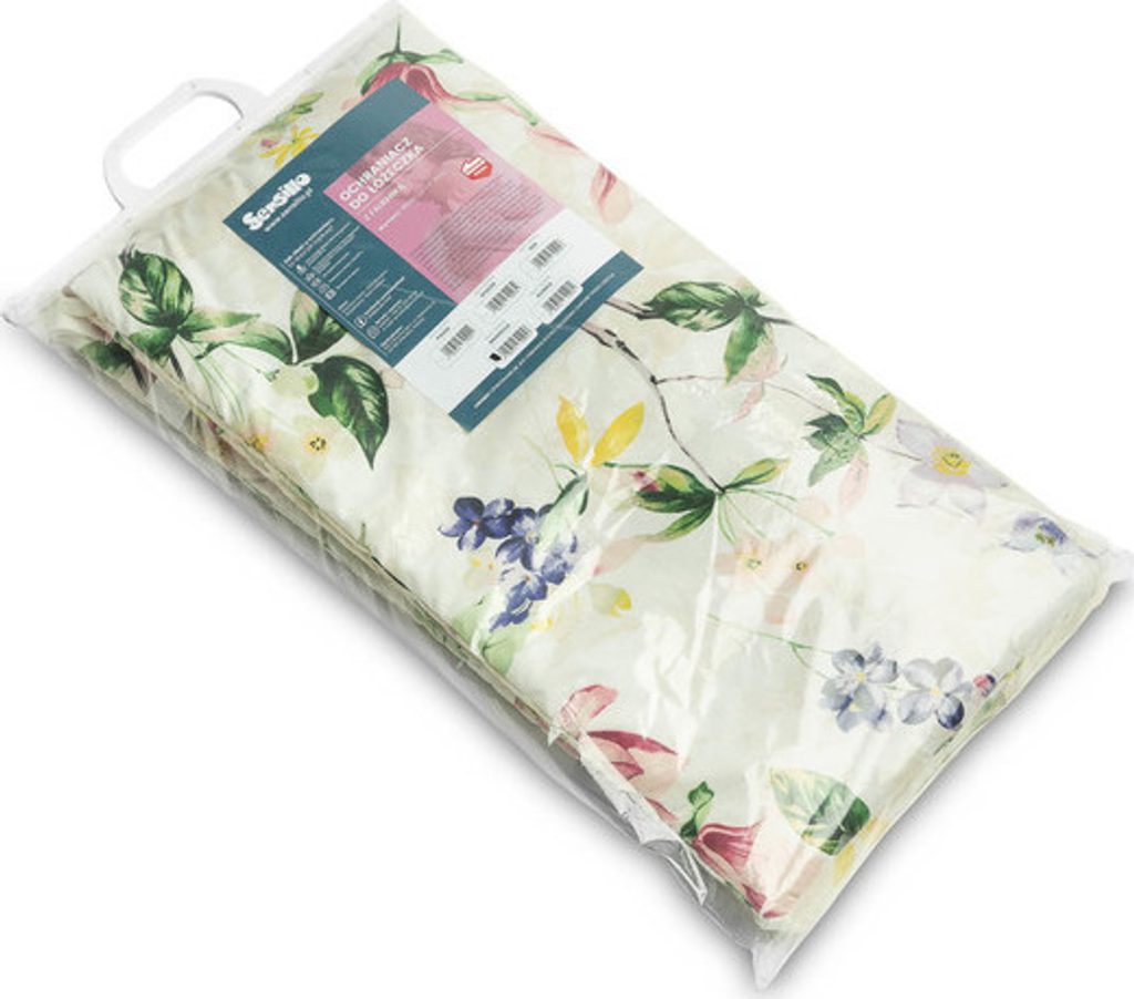Ochranný mantinel do postýlky se hodí do každé standardní postýlky. Vyniká krásnými materiály a všitým volánkem, díky kterému bude dětský pokojíček jedinečný. Chránič je vyroben z měkké bavlny s potiskem. Výplň z vaty ochrání dítě před zraněním při pohybu po postýlce. Udržení chrániče ve správné poloze zajišťují hustě šité stuhy sloužící k připevnění k příčkám postýlky. Byl navržen pro postýlku o rozměrech 120x60 cm. Chránič bude skvělým doplňkem dětské výbavičky.
