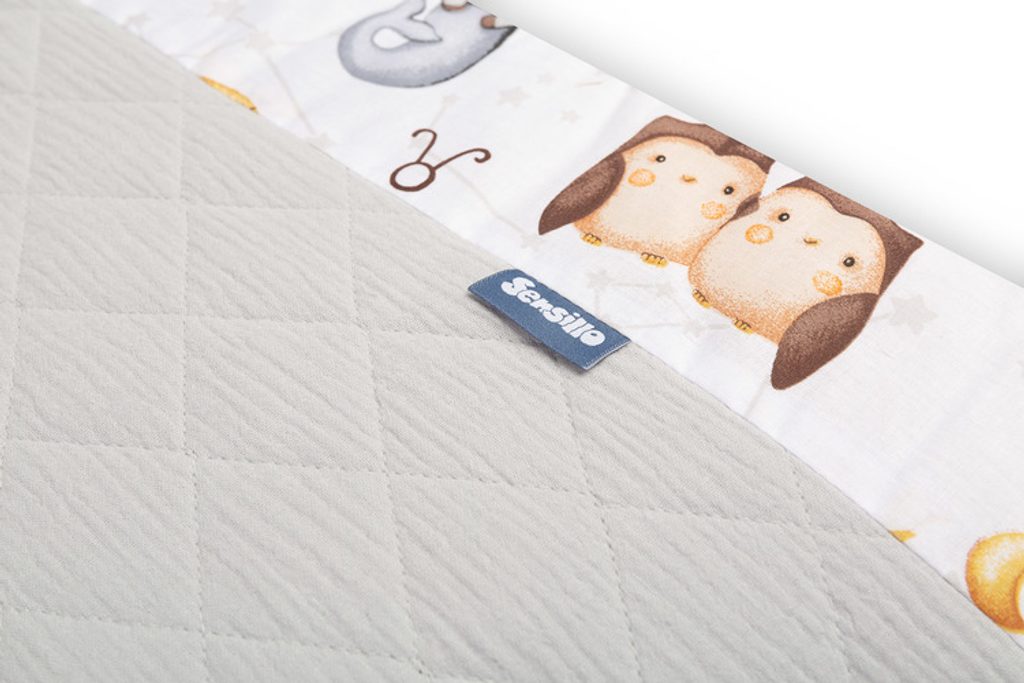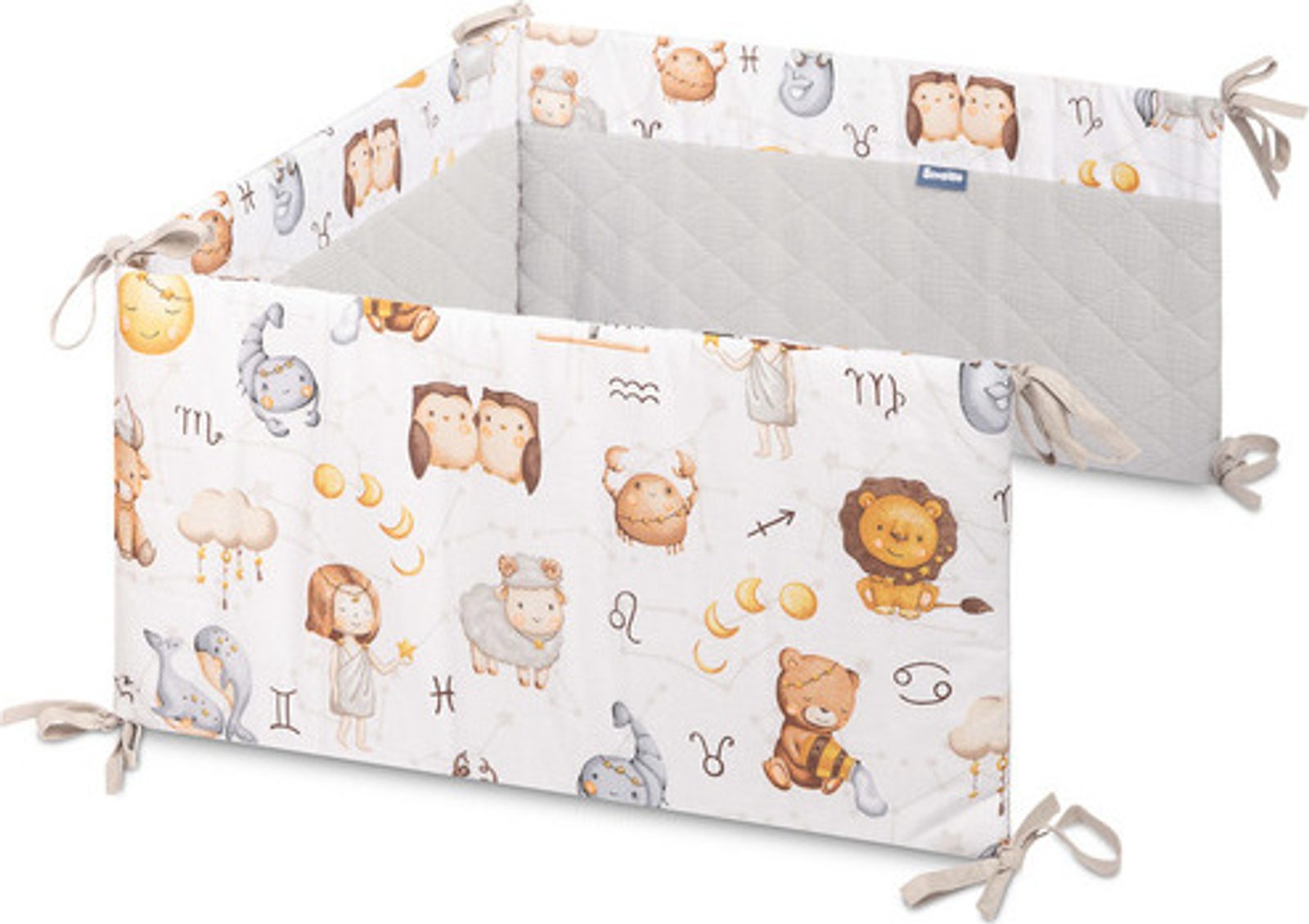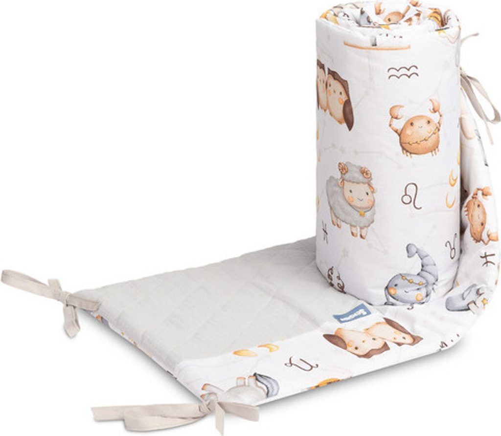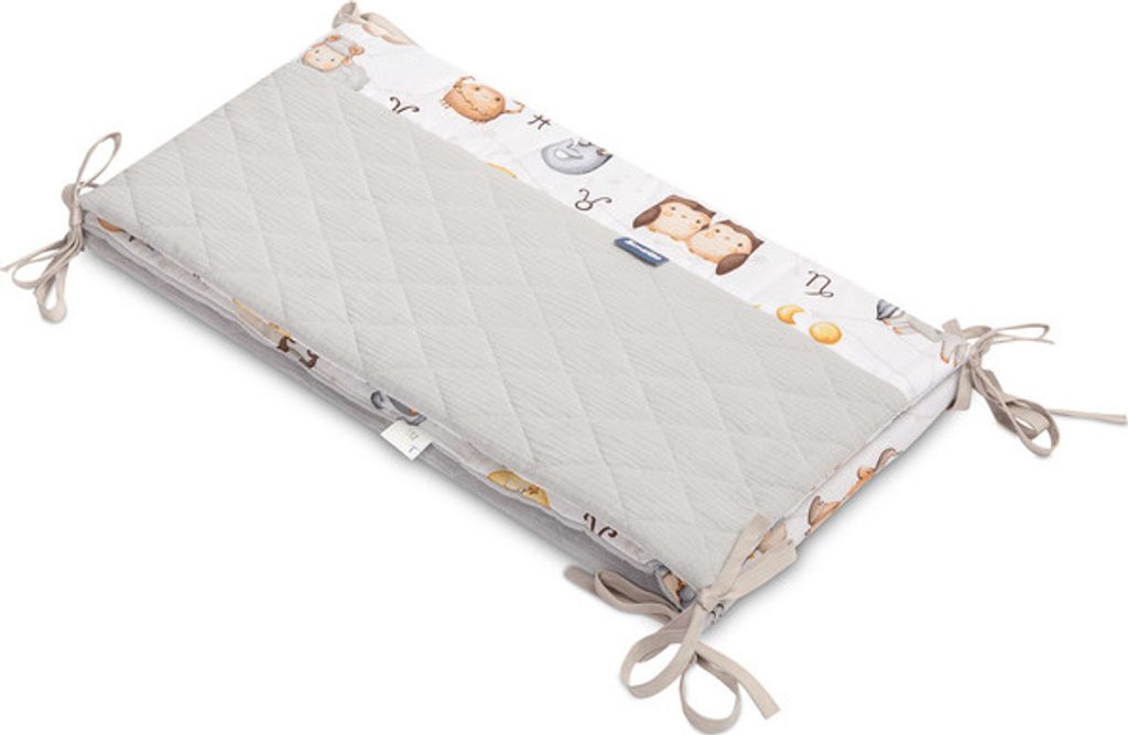 Ochranný mantinel do postýlky je vhodný pro jakoukoli standardní dětskou postýlku. Ochranný mantinel je vyroben z měkké potištěné bavlny a na dotek příjemného mušelínu. Polyesterová výplň ochrání vaše dítě před zraněním při pohybu po postýlce. Ochranný mantinel drží na svém místě pomocí stuh, kterými se přivazuje k příčkám postýlky. Byl navržen tak, aby se vešel do postýlky o rozměrech 120x60 cm. Ochranný mantinel bude dokonalým doplňkem výbavičky vašeho dítěte.