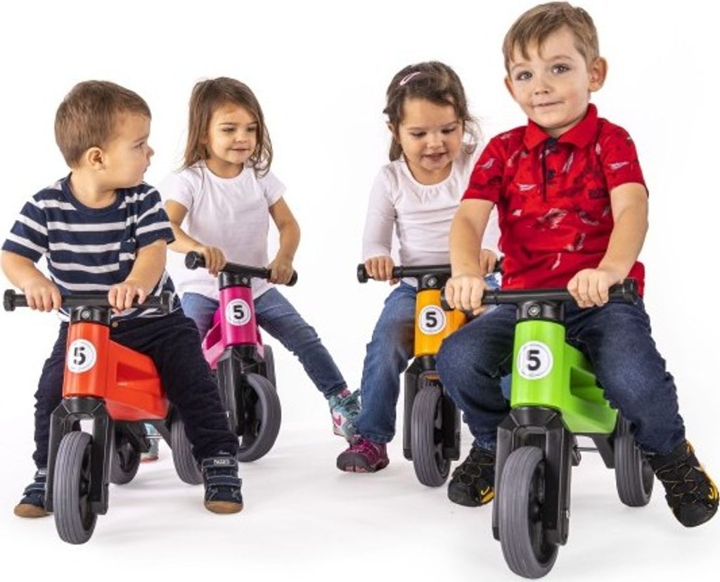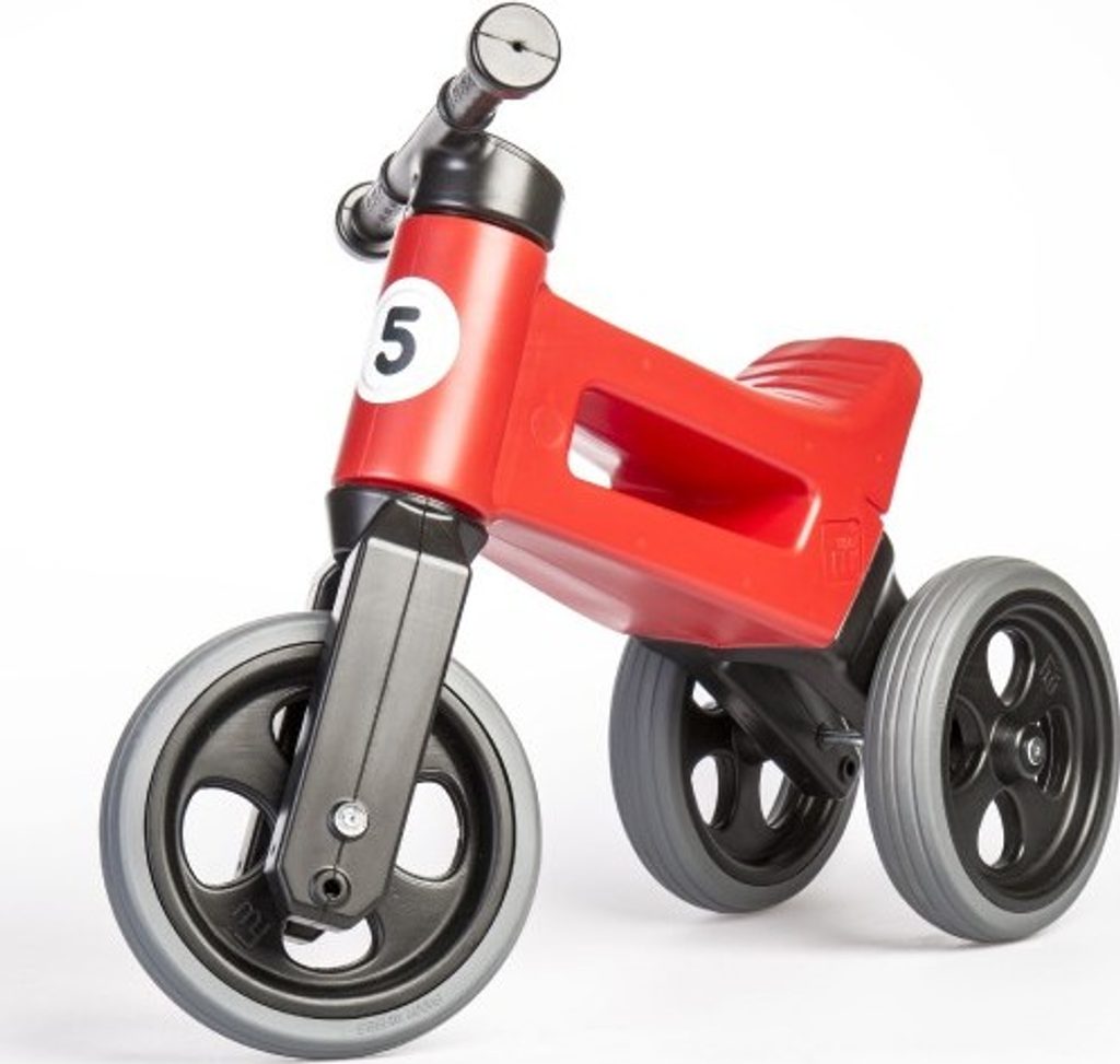 FUNNY WHEELS SPORT odrážedlo s pneumatikami, díky kterým má odrážedlo tichý provoz a kola se nekloužou. A jedééém! FUNNY WHEELS je originální české odrážedlo, které dokáže růst s vaším dítětem. Vzhledem k tomu, že můžete vyměnit dvě zadní kola za jedno a nastavit jeho výšku, nemusíte kupovat každý rok nové odstrkovadlo. FUNNY WHEELS vám vydrží, dokud nebudete kupovat první kolo. Hlavní výhody FUNNY WHEELS: 2v1 – během pár minut změníte tříkolové odrážedlo na dvoukolové 2 výškové polohy – nastavíte vpředu i vzadu (rozdíl 3 cm) Tiché pneumatiky, které nekloužou na výběr v 6 barvách – zelená, červená, modrá, růžová, oranžová, šedá cool design bezpečné i pro ty nejmenší z odolného a nezávadného plastu, se zahlazenými spoji omyvatelné vlažnou vodou a mýdlovými čisticími prostředky kompletně vyrobené v České republice FUNNY WHEELS roste stejně, jako váš prcek. Ten začne jezdit na malém tříkolovém odrážedle, až se vytáhne, jednoduše FUNNY WHEELS zvednete o 3 cm výš a jede se dál. Až přijde čas trénovat balanc, jednoduše vyměníte dvě zadní kolečka za jedno a dítko se může začít připravovat na jízdu na kole. Jak přesně to funguje, vidíte na videu. Odstrkovadlo je přitom stabilní (ve variantě se třemi koly). Vidlice má omezený rozsah otáčení a řídítka se tak nemohou přetočit. Rukojeti řídítek jsou na konci rozšířené, a tím chrání dětské ruce před poraněním. Odrážedlo je hračka, která baví snad každé dítě. S FUNNY WHEELS si užije radost z pohybu, zlepší si své motorické schopnosti a koordinaci, natrénuje pozornost, rovnováhu a třeba si i zazávodí! Vaše společné procházky budou delší, rychlejší a zábavnější. Technické parametry: doporučený věk: od 18 měsíců nosnost: 25 kg váha odrážedla: 2,1 kg výška sedla: 28/31 cm šířka řídítek: 30 cm rozteč zadních kol: 20 cm průměr kola:19 cm šířka pneumatiky: 4 cm Odrážedlo koupíte sestavené jako tříkolové. Součástí balení jsou dva imbusy a kratší osa na zadní kolo pro úpravu odrážedla na dvoukolové. Je možné zakoupit i náhradní díly – samostatná kola a osy.