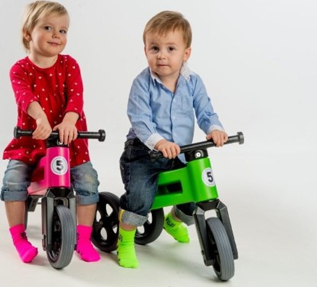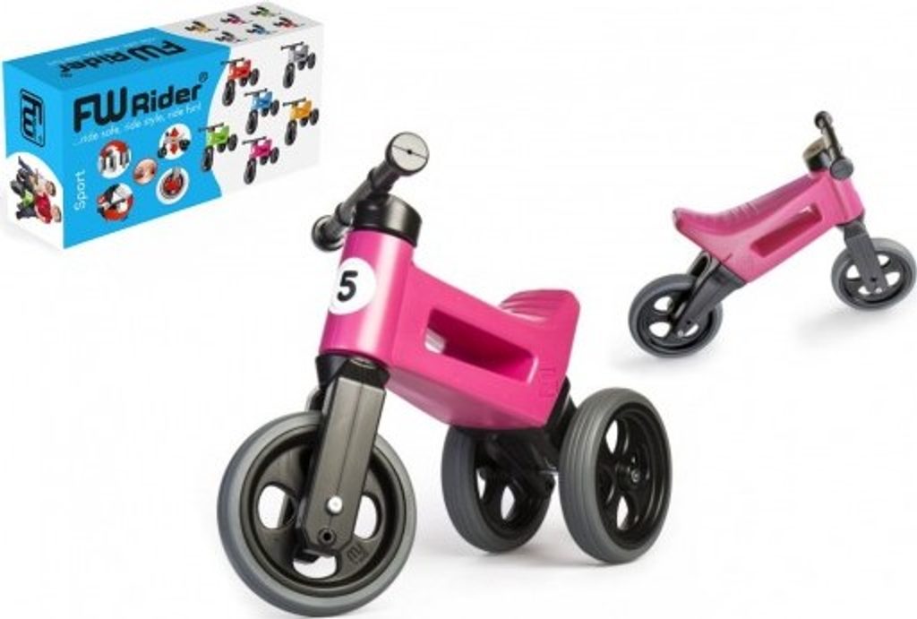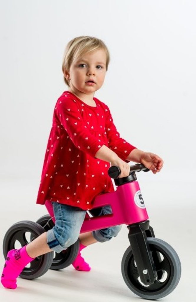 FUNNY WHEELS 2v1 s pneumatikami, díky kterým má odrážedlo tichý provoz a kola se nekloužou. A jedééém! FUNNY WHEELS je originální české odrážedlo, které dokáže růst s vaším dítětem. Vzhledem k tomu, že můžete vyměnit dvě zadní kola za jedno a nastavit jeho výšku, nemusíte kupovat každý rok nové odstrkovadlo. FUNNY WHEELS vám vydrží, dokud nebudete kupovat první kolo. Hlavní výhody FUNNY WHEELS: 2v1 – během pár minut změníte tříkolové odrážedlo na dvoukolové 2 výškové polohy – nastavíte vpředu i vzadu (rozdíl 3 cm) Tiché pneumatiky, které nekloužou na výběr v 6 barvách – zelená, červená, modrá, růžová, oranžová, šedá cool design bezpečné i pro ty nejmenší z odolného a nezávadného plastu, se zahlazenými spoji omyvatelné vlažnou vodou a mýdlovými čisticími prostředky kompletně vyrobené v České republice FUNNY WHEELS roste stejně, jako váš prcek. Ten začne jezdit na malém tříkolovém odrážedle, až se vytáhne, jednoduše FUNNY WHEELS zvednete o 3 cm výš a jede se dál. Až přijde čas trénovat balanc, jednoduše vyměníte dvě zadní kolečka za jedno a dítko se může začít připravovat na jízdu na kole. Jak přesně to funguje, vidíte na videu. Odstrkovadlo je přitom stabilní (ve variantě se třemi koly). Vidlice má omezený rozsah otáčení a řídítka se tak nemohou přetočit. Rukojeti řídítek jsou na konci rozšířené, a tím chrání dětské ruce před poraněním. Odrážedlo je hračka, která baví snad každé dítě. S FUNNY WHEELS si užije radost z pohybu, zlepší si své motorické schopnosti a koordinaci, natrénuje pozornost, rovnováhu a třeba si i zazávodí! Vaše společné procházky budou delší, rychlejší a zábavnější. Technické parametry: doporučený věk: od 18 měsíců nosnost: 25 kg váha odrážedla: 1,9 kg výška sedla: 28/30 cm šířka řidítek: 30 cm rozteč zadních kol: 20 cm průměr kola:19 cm šířka pneumatiky: 4 cm Odrážedlo zakoupíte v krabici - tam jej najdete v částečně složeném stavu, ale nebojte, dle návodu jednoduše sestavíte celé odrážedlo.