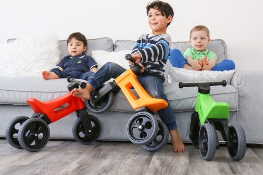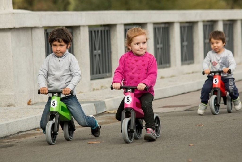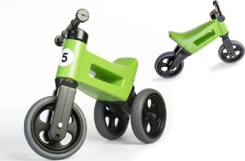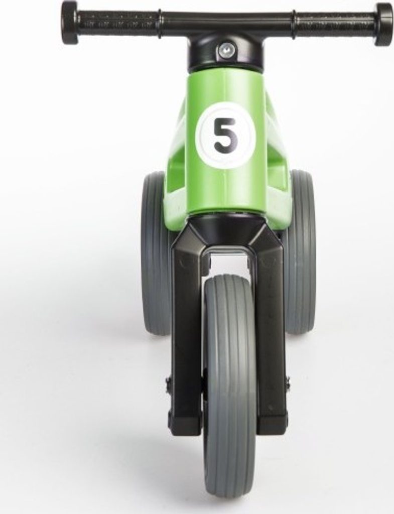 FUNNY WHEELS SPORT novinka s pneumatikami, díky kterým má odrážedlo tichý provoz a kola se nekloužou. A jedééém! FUNNY WHEELS je originální české odrážedlo, které dokáže růst s vaším dítětem. Vzhledem k tomu, že můžete vyměnit dvě zadní kola za jedno a nastavit jeho výšku, nemusíte kupovat každý rok nové odstrkovadlo. FUNNY WHEELS vám vydrží, dokud nebudete kupovat první kolo. Hlavní výhody FUNNY WHEELS: 2v1 – během pár minut změníte tříkolové odrážedlo na dvoukolové 2 výškové polohy – nastavíte vpředu i vzadu (rozdíl 3 cm) Tiché pneumatiky, které nekloužou na výběr v 6 barvách – zelená, červená, modrá, růžová, oranžová, šedá cool design bezpečné i pro ty nejmenší z odolného a nezávadného plastu, se zahlazenými spoji omyvatelné vlažnou vodou a mýdlovými čisticími prostředky kompletně vyrobené v České republice FUNNY WHEELS roste stejně, jako váš prcek. Ten začne jezdit na malém tříkolovém odrážedle, až se vytáhne, jednoduše FUNNY WHEELS zvednete o 3 cm výš a jede se dál. Až přijde čas trénovat balanc, jednoduše vyměníte dvě zadní kolečka za jedno a dítko se může začít připravovat na jízdu na kole. Jak přesně to funguje, vidíte na videu. Odstrkovadlo je přitom stabilní (ve variantě se třemi koly). Vidlice má omezený rozsah otáčení a řídítka se tak nemohou přetočit. Rukojeti řídítek jsou na konci rozšířené, a tím chrání dětské ruce před poraněním. Odrážedlo je hračka, která baví snad každé dítě. S FUNNY WHEELS si užije radost z pohybu, zlepší si své motorické schopnosti a koordinaci, natrénuje pozornost, rovnováhu a třeba si i zazávodí! Vaše společné procházky budou delší, rychlejší a zábavnější. Technické parametry: doporučený věk: od 18 měsíců nosnost: 25 kg váha odrážedla: 2,10 kg výška sedla: 28/31 cm šířka řídítek: 30 cm rozteč zadních kol: 20 cm průměr kola:19 cm šířka pneumatiky: 4 cm Odrážedlo koupíte sestavené jako tříkolové. Součástí balení jsou dva imbusy a kratší osa na zadní kolo pro úpravu odrážedla na dvoukolové. Je možné zakoupit i náhradní díly – samostatná kola a osy.