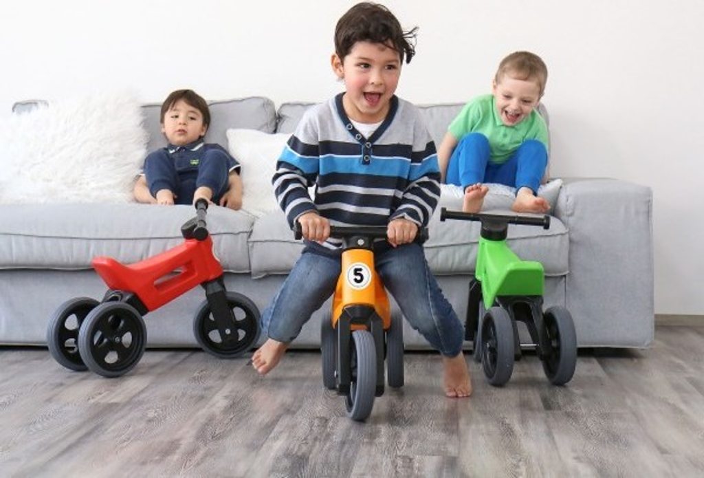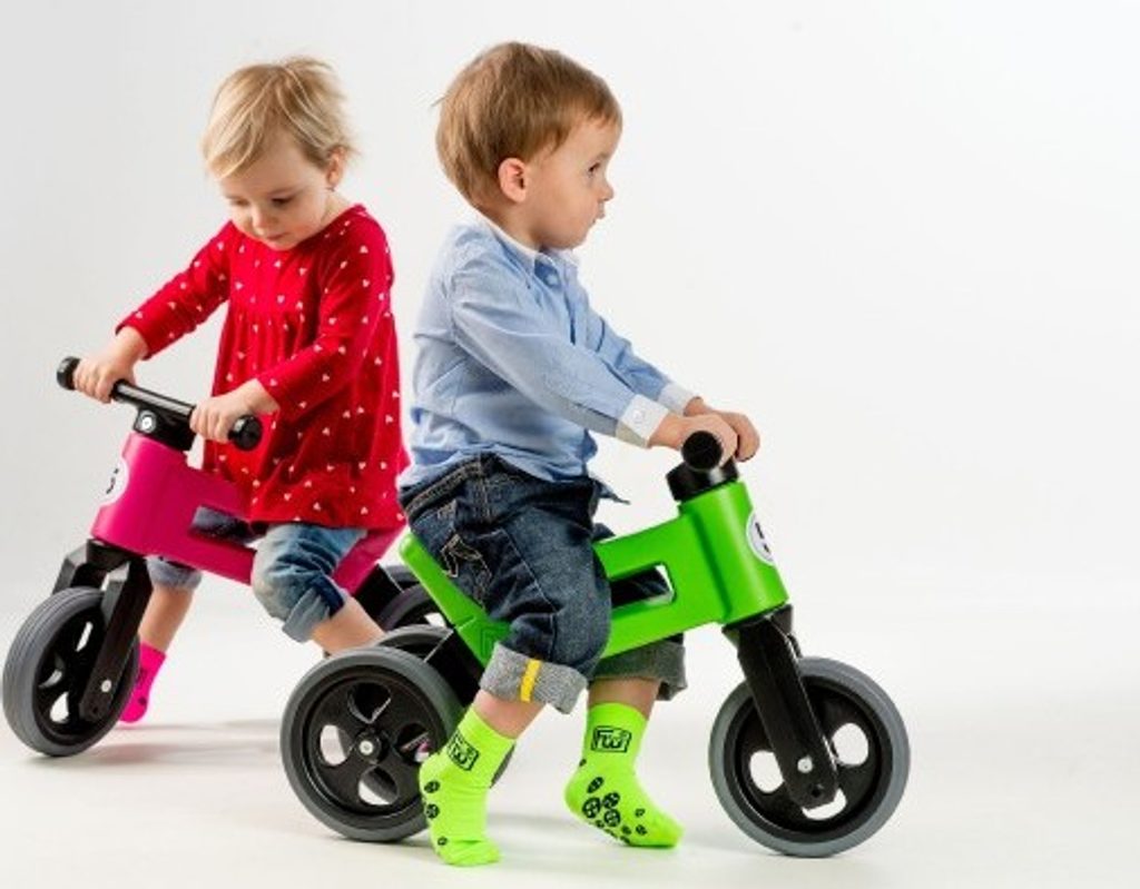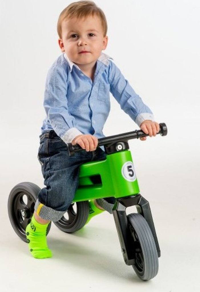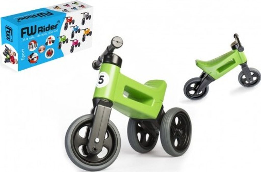 FUNNY WHEELS 2v1 s pneumatikami, díky kterým má odrážedlo tichý provoz a kola se nekloužou. A jedééém! FUNNY WHEELS je originální české odrážedlo, které dokáže růst s vaším dítětem. Vzhledem k tomu, že můžete vyměnit dvě zadní kola za jedno a nastavit jeho výšku, nemusíte kupovat každý rok nové odstrkovadlo. FUNNY WHEELS vám vydrží, dokud nebudete kupovat první kolo. Hlavní výhody FUNNY WHEELS: 2v1 – během pár minut změníte tříkolové odrážedlo na dvoukolové 2 výškové polohy – nastavíte vpředu i vzadu (rozdíl 3 cm) Tiché pneumatiky, které nekloužou na výběr v 6 barvách – zelená, červená, modrá, růžová, oranžová, šedá cool design bezpečné i pro ty nejmenší z odolného a nezávadného plastu, se zahlazenými spoji omyvatelné vlažnou vodou a mýdlovými čisticími prostředky kompletně vyrobené v České republice FUNNY WHEELS roste stejně, jako váš prcek. Ten začne jezdit na malém tříkolovém odrážedle, až se vytáhne, jednoduše FUNNY WHEELS zvednete o 3 cm výš a jede se dál. Až přijde čas trénovat balanc, jednoduše vyměníte dvě zadní kolečka za jedno a dítko se může začít připravovat na jízdu na kole. Jak přesně to funguje, vidíte na videu. Odstrkovadlo je přitom stabilní (ve variantě se třemi koly). Vidlice má omezený rozsah otáčení a řídítka se tak nemohou přetočit. Rukojeti řídítek jsou na konci rozšířené, a tím chrání dětské ruce před poraněním. Odrážedlo je hračka, která baví snad každé dítě. S FUNNY WHEELS si užije radost z pohybu, zlepší si své motorické schopnosti a koordinaci, natrénuje pozornost, rovnováhu a třeba si i zazávodí! Vaše společné procházky budou delší, rychlejší a zábavnější. Technické parametry: doporučený věk: od 18 měsíců nosnost: 25 kg váha odrážedla: 1,9 kg výška sedla: 28/30 cm šířka řidítek: 30 cm rozteč zadních kol: 20 cm průměr kola:19 cm šířka pneumatiky: 4 cm Odrážedlo zakoupíte v krabici - tam jej najdete v částečně složeném stavu, ale nebojte, dle návodu jednoduše sestavíte celé odrážedlo.