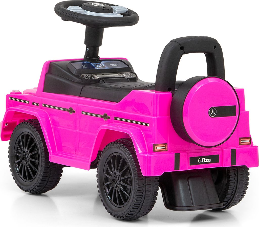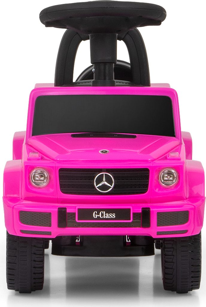 Dětské odrážedlo MERCEDES G350d je vyrobeno v licenci koncernu MERCEDES. Váš malý závodník či závodnice se v něm bude cítit jako v opravdovém džípu. Odrážedlo je vyrobeno s důrazem na každý detail a kvalitu použitých materiálů. Jeho vzhled upoutá pozornost nejen každého dítěte, ale i rodiče. Odrážedlo pomáhá rozvíjet motorické schopnosti dítěte a Váš malý závodník či závodnice si s ním užije spoustu zábavy a legrace. Autíčko má na tříramenném volantu tlačítka vydávající různé melodie, zvuk motoru nebo houkačku. Je určeno jak pro nejmenší děti, které už umí sedět, tak i pro děti, které se už naučily chodit. Odrážedlo má otočná přední kola a široké a komfortní sedadlo s úložným prostorem. Baterie nejsou součástí balení (2x AA 1.5V).