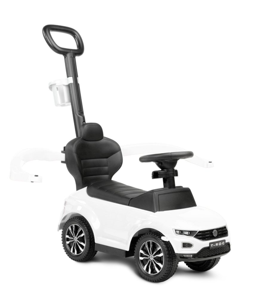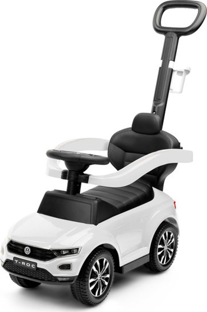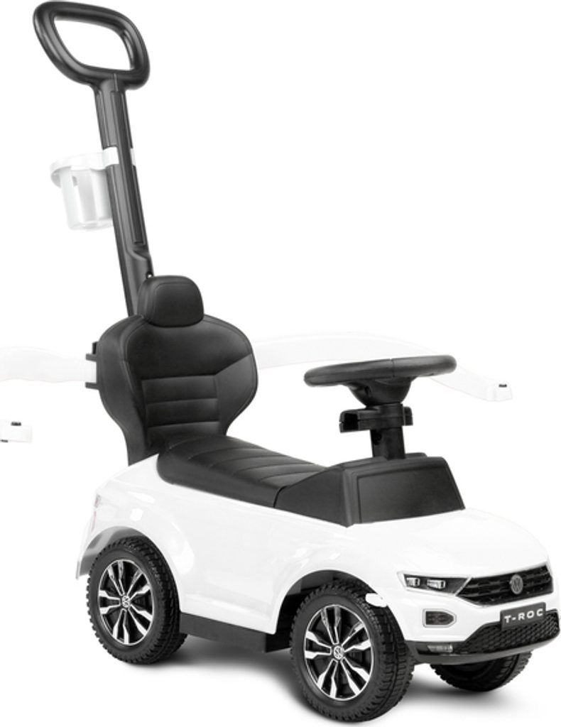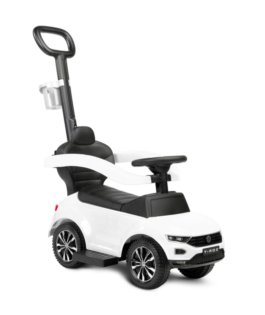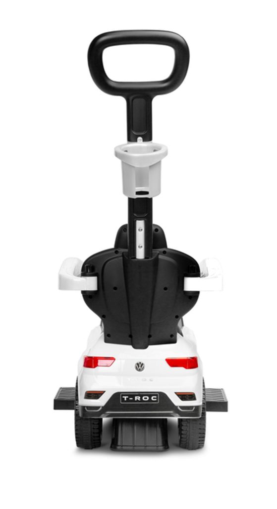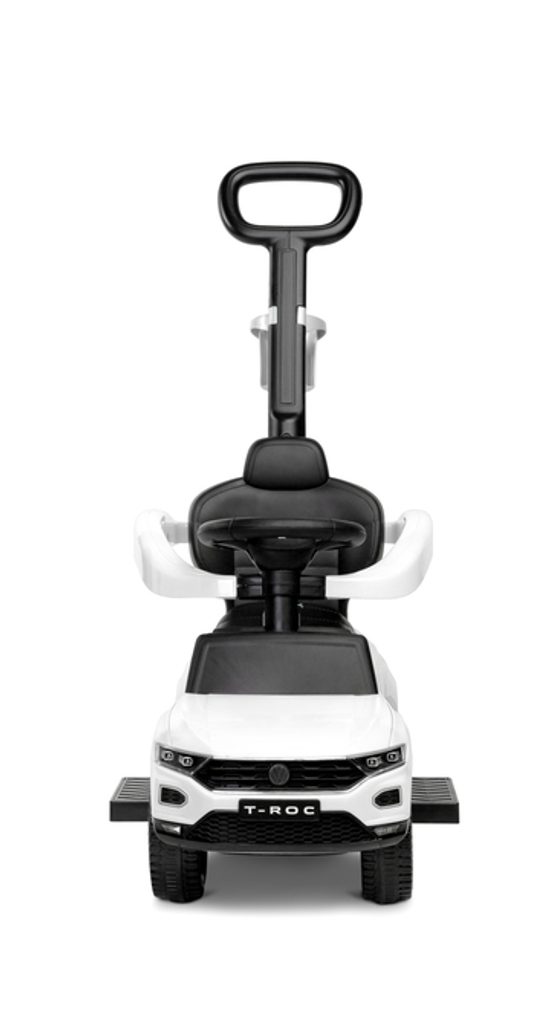 Odrážedlo VW T-Roc od firmy Toyz pro malé děti s madlem pro tlačení. Díky licenci značky Volkswagen se podařilo věrně reprodukovat agresivní povahu skutečného SUV. Odrážedlo je ideální pro společné procházky. Dítě se může pohybovat samostatně a při únavě rodič snadno převezme kontrolu nad vozidlem. Výsuvné plošinky umožňují bezpečnou podporu nohou a madlo chrání před vypadnutím. Pod sedadlem je přihrádka na hračky. Na rukojeti je držák na nápoje.