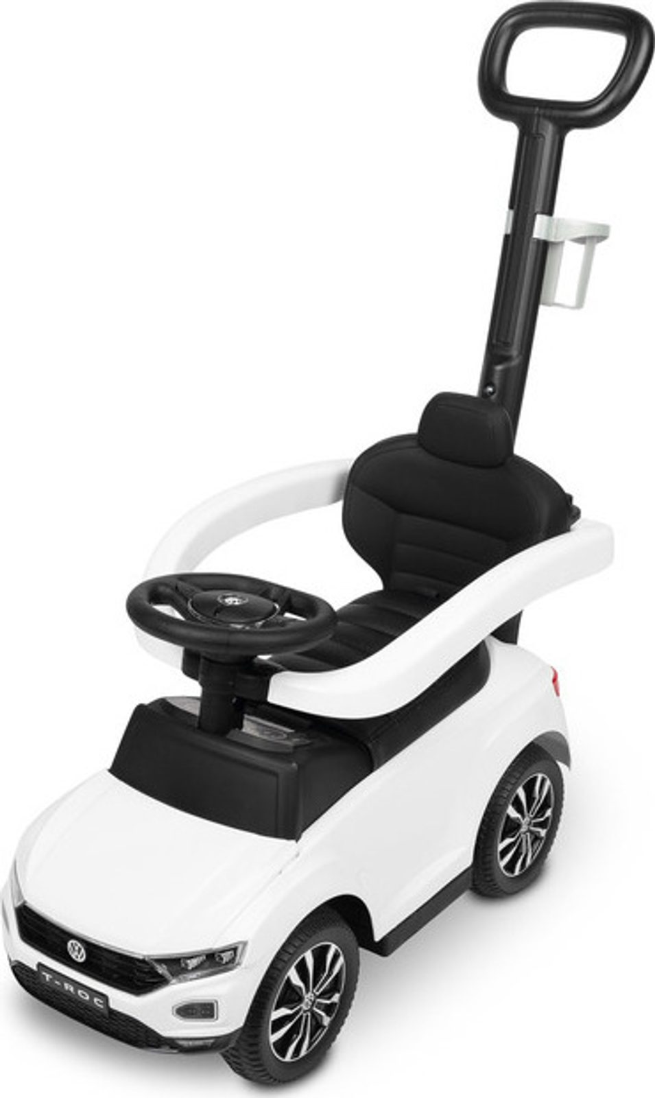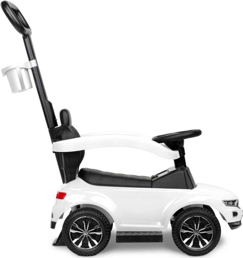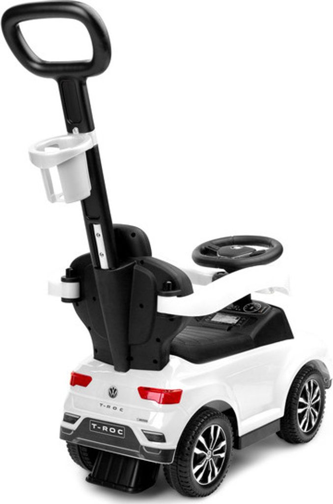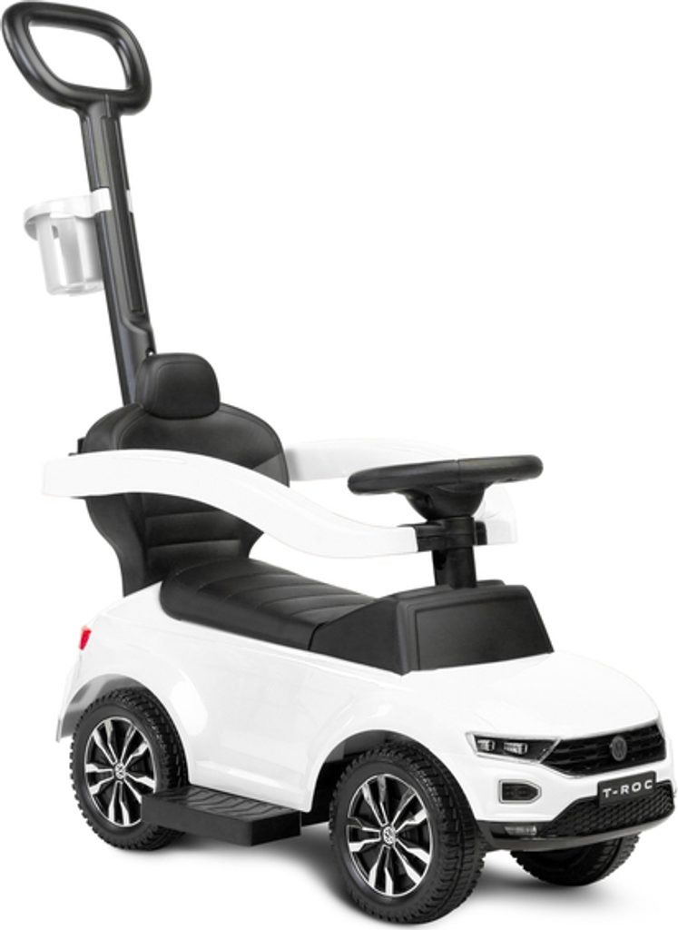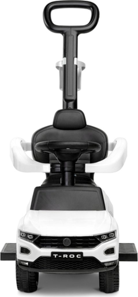 Odrážedlo VW T-Roc od firmy Toyz pro malé děti s madlem pro tlačení. Díky licenci značky Volkswagen se podařilo věrně reprodukovat agresivní povahu skutečného SUV. Odrážedlo je ideální pro společné procházky. Dítě se může pohybovat samostatně a při únavě rodič snadno převezme kontrolu nad vozidlem. Výsuvné plošinky umožňují bezpečnou podporu nohou a madlo chrání před vypadnutím. Pod sedadlem je přihrádka na hračky. Na rukojeti je držák na nápoje.