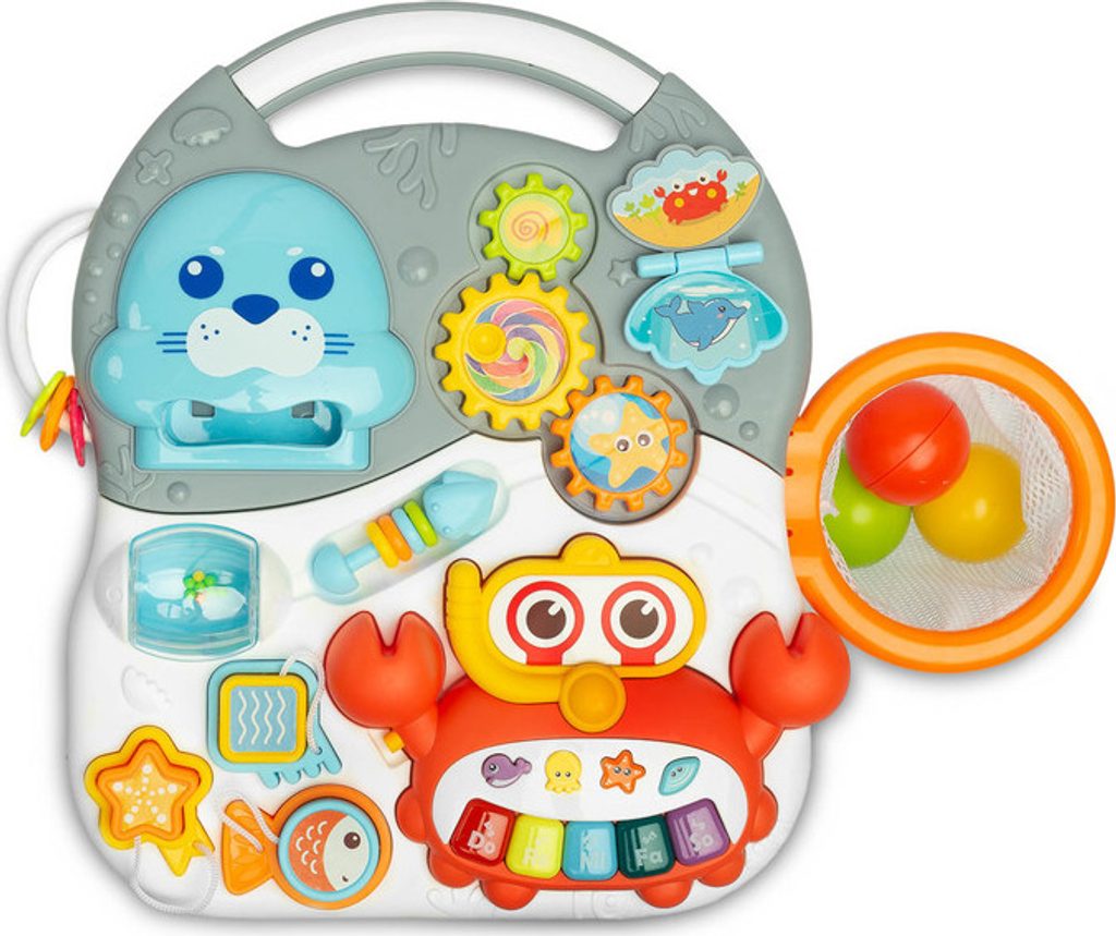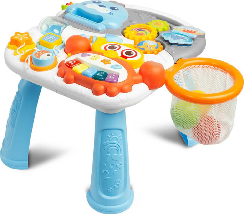 Spark je vzdělávací hračka z řady TOYZ Activity, která je ideální pro děti, které již začaly dělat první krůčky. Kombinací několika možností v jedné hračce zabaví vaše batole na dlouhé hodiny. Může fungovat jako odstrkovadlo nebo interaktivní stolek se spoustou atrakcí. Čas hraní mu zpříjemní košík, do kterého může vhodit 3 plastové míčky s chrastítkem, baterií poháněné a vysouvací piáno ve tvaru kraba, točící se ozubená kola a mnoho dalších překvapení. Přední panel lze odejmout a přeměnit na hrací stolek.