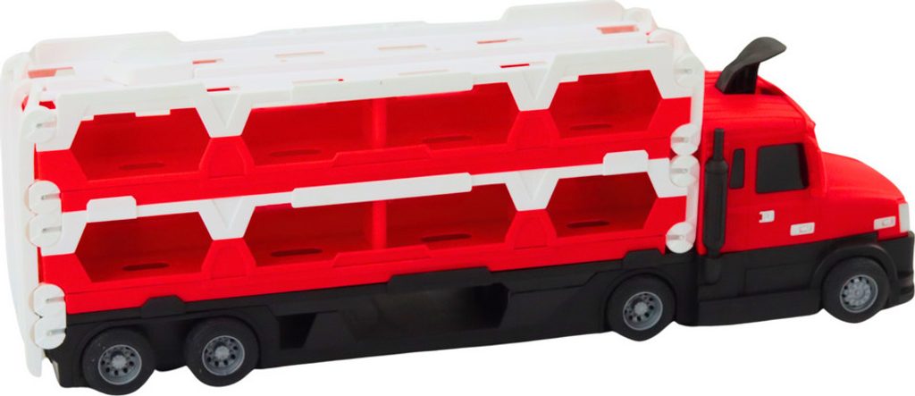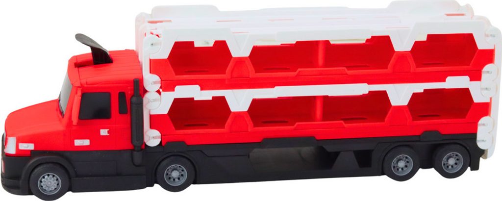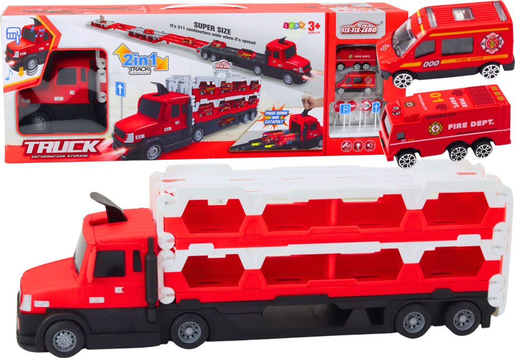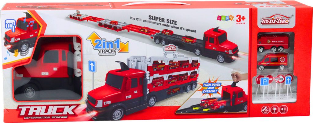 Představujeme inovativní hračku, která spojuje funkce přepravního náklaďáku, závodní dráhy v jednom - v dynamické červené barvě. Tato všestranná hračka poskytuje hodiny vzrušující zábavy, umožňuje vám přepravovat auta a pořádat vzrušující závody.