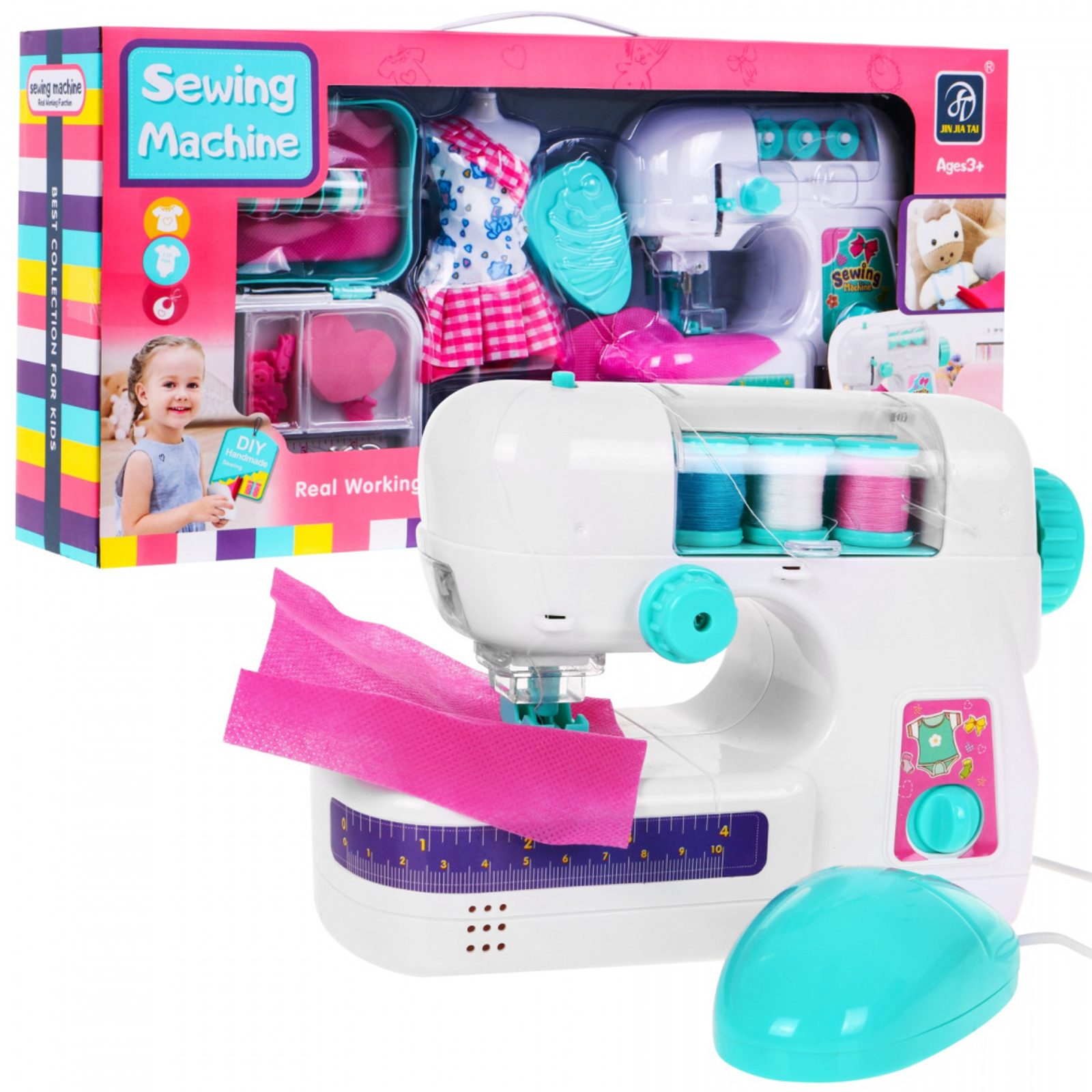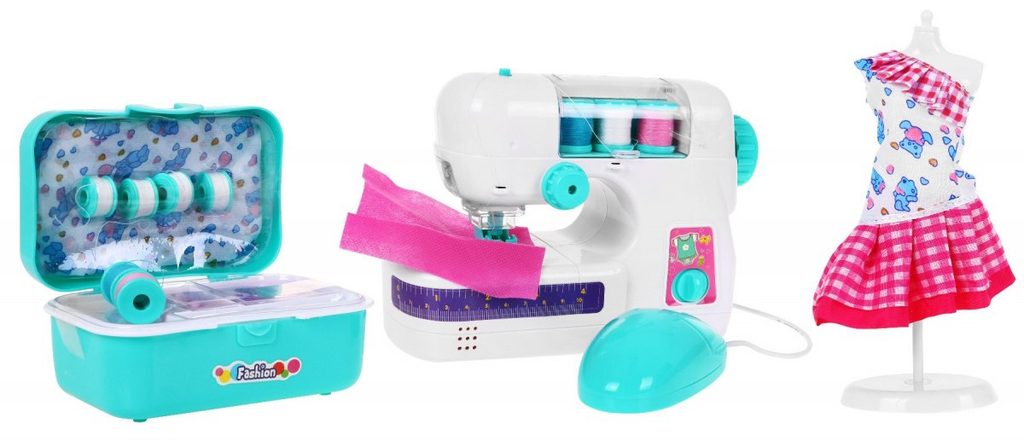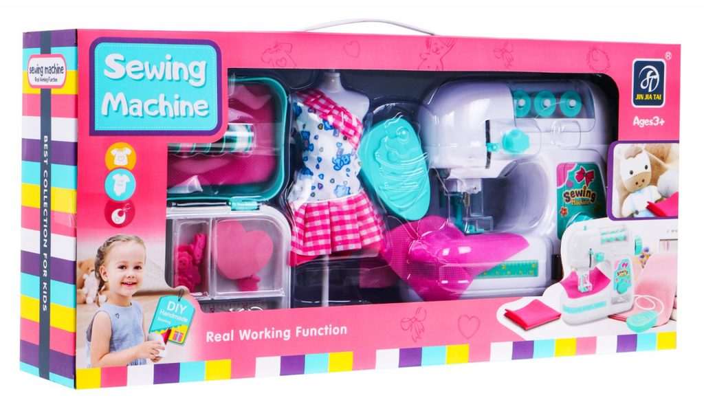Kompletně vybavený dětský šicí stroj s příslušenstvím Sewing Machine II umožní dětem šití neskutečného množství vlastních výrobků. Stroj je dokonalou imitací skutečného šicího stroje pro dospělé. Místo šití má osvětlení a jehla je chráněna bezpečným krytem které zabraňuje zranění. Součástí sady je také figurína se šatičky, špulky, jehelníček, kus látky, krejčovský metr, nůžky a také organizér do kterého lze uložit všechny drobnosti. Během šití stroj vydává zvuk. Hračka je vyrobená z plastu v pestrobarevném provedení a určena pro děti od 6 let.