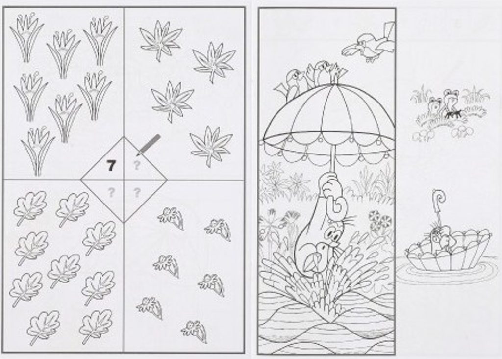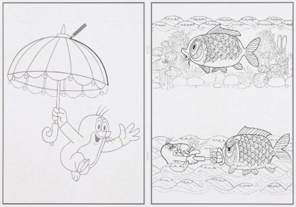 Omalovánky Krtek a paraplíčko na motivy známého hrdiny animovaného večerníčku Krteček. Krteček baví děti již po více generací a znát ho musí snad každý. Zadní stranu sešitu můžete odstřihnout, a poté ji použít jako předlohu k vybarevní obrázků v omalovánce. Velikost omalovánky je A4.