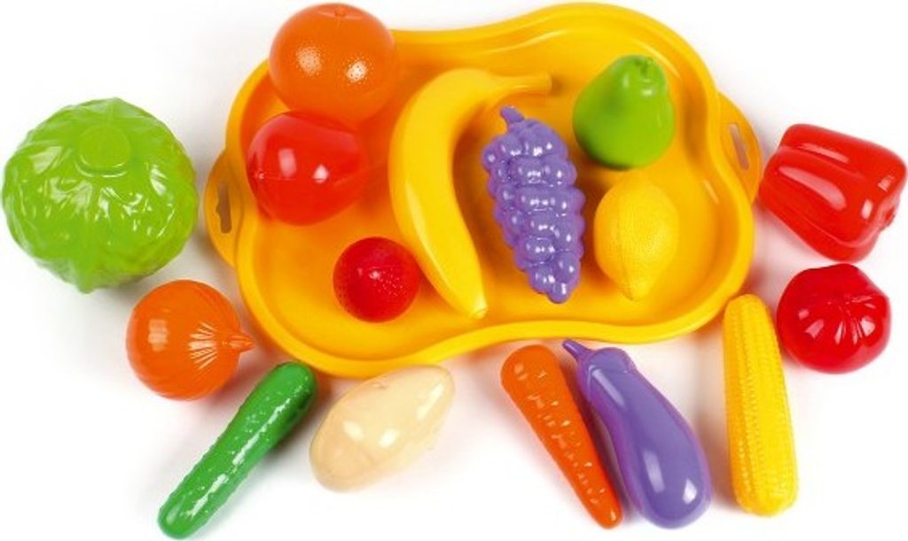 Plastový podnos/tác s atrapami ovoce a zeleniny je výborným dárkem pro každou malou kuchařku. Velký výběr potravin umožní malé kuchařce uvařit více lahodných pokrmů najednou a pohostit tak své kamarádky či panenky.