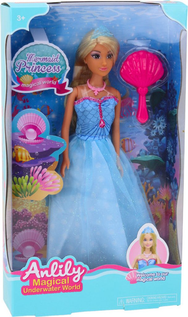 Panenka Anlily Mermaid Princess zavede děti do kouzelného světa podvodních dobrodružství a pohádkových příběhů. Dlouhé zlaté vlasy dokonale ladí s elegantními modrými šaty zdobenými motivem mořské panny, díky nimž vypadá jako skutečná princezna z podmořského království.