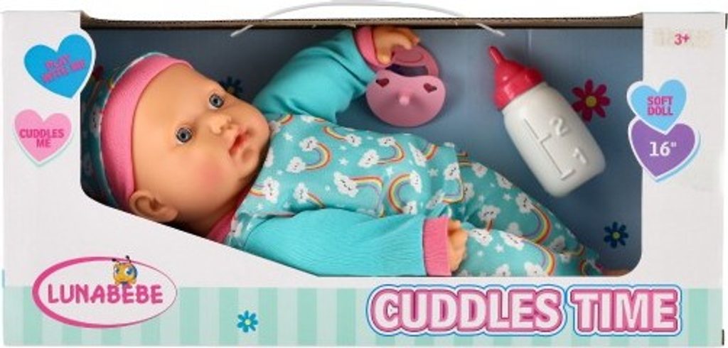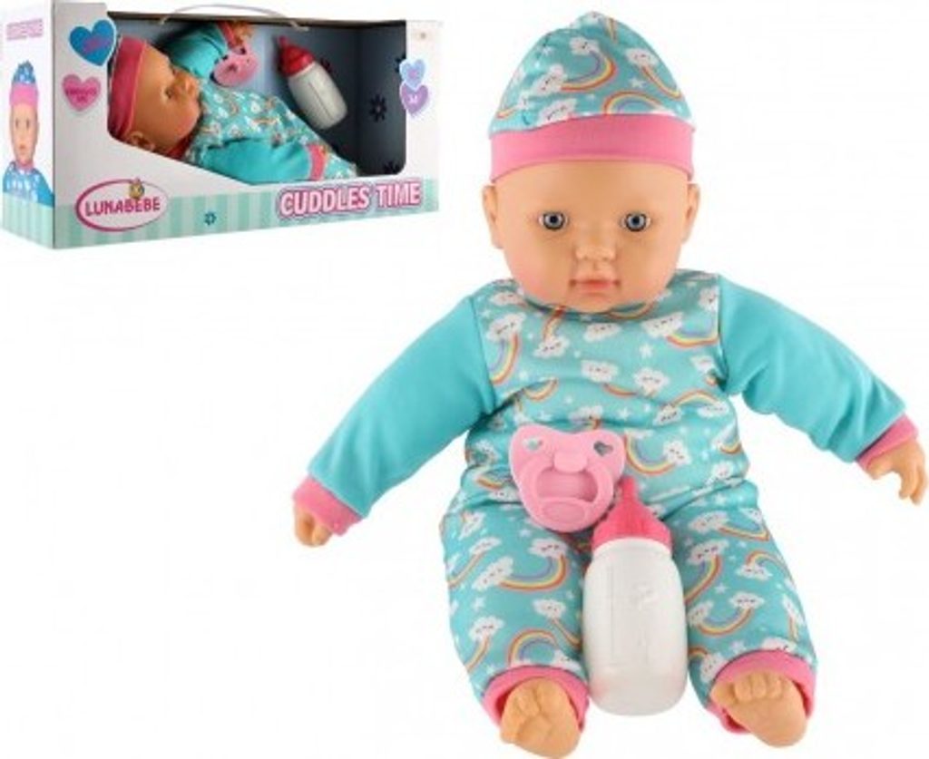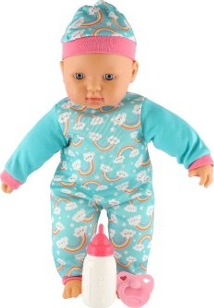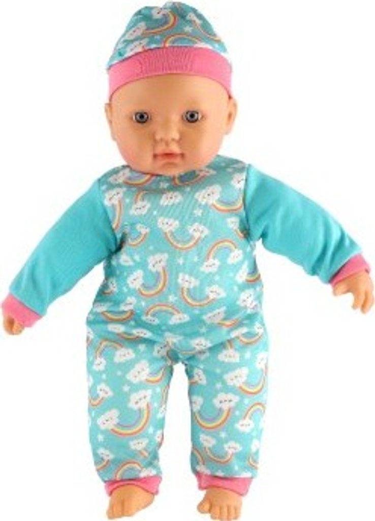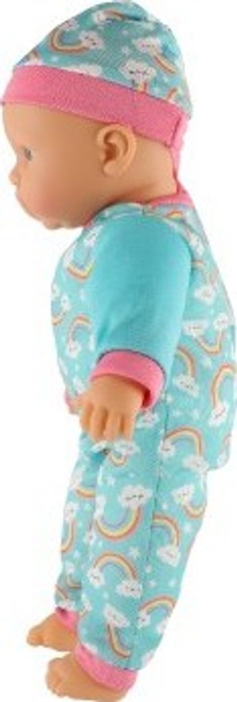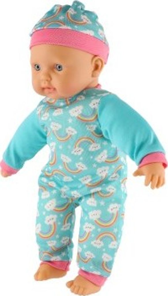 Roztomilá panenka s měkým tělíčkem v krásném oblečku s duhami. Toto miminko udělá jistě radost každé holčičce a stane se tak její nepostradatelnou součástí. Součástí balení je i lahvička a dudlík, které určitě každá maminka pro své miminko nutně potřebuje.