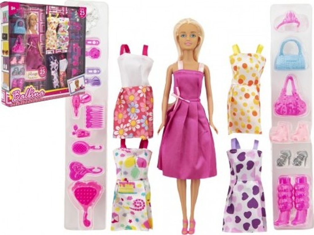 Panenka s šaty na převlékání a doplňky pro všechny milovnice módy. Panenku můžete učesat a převlékat dle vlastní fantazie. Součástí balení je spoustu doplňků jako šaty, doplňky, kabelky a panenka může na molo. Sada obsahuje více než 25 doplňků.