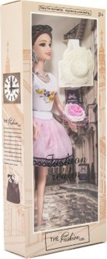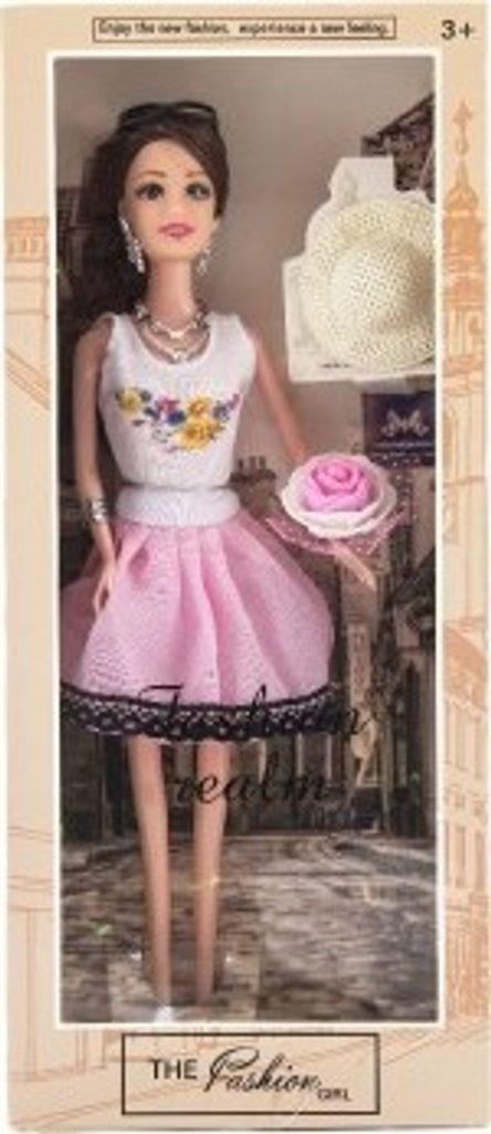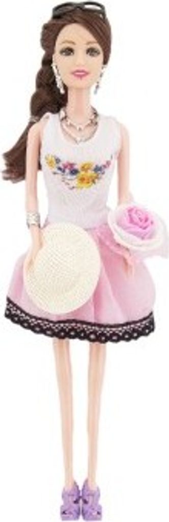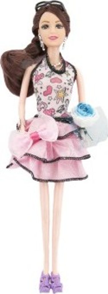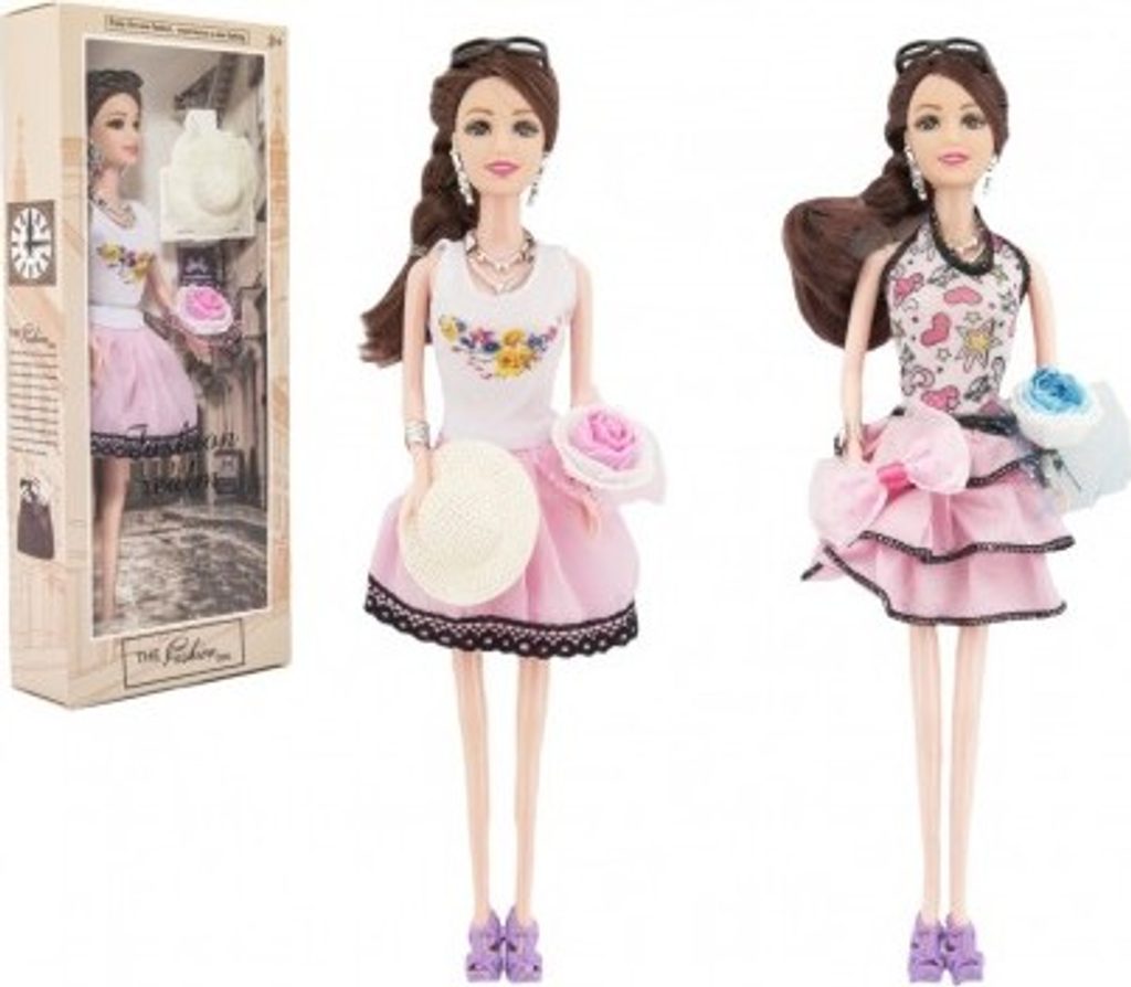 Krásná panenka s kloubovými končetinami. Panenka má stylové šaty a doplňky.