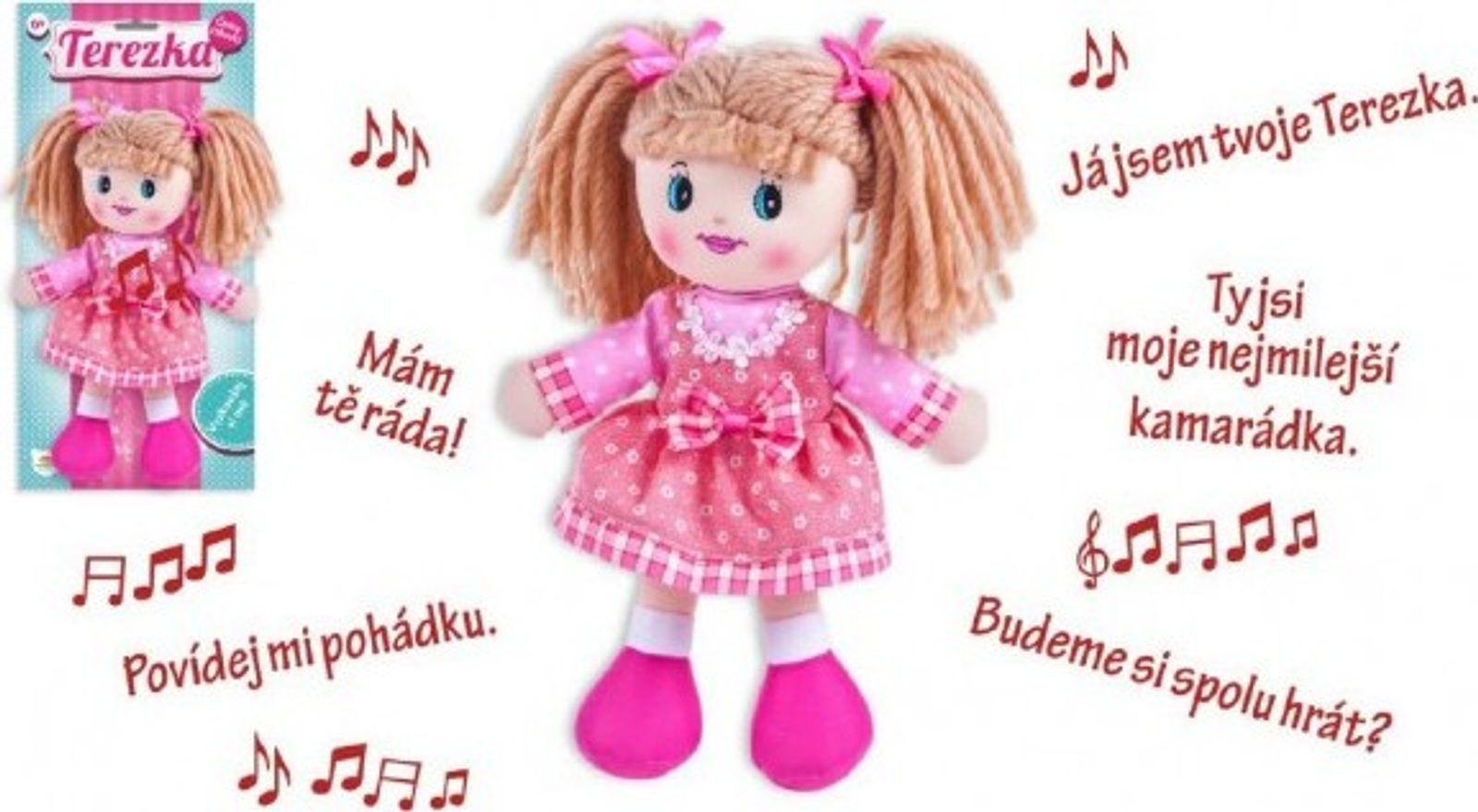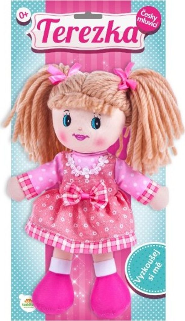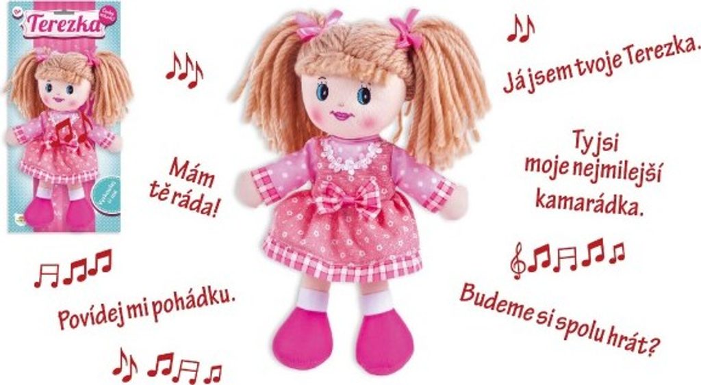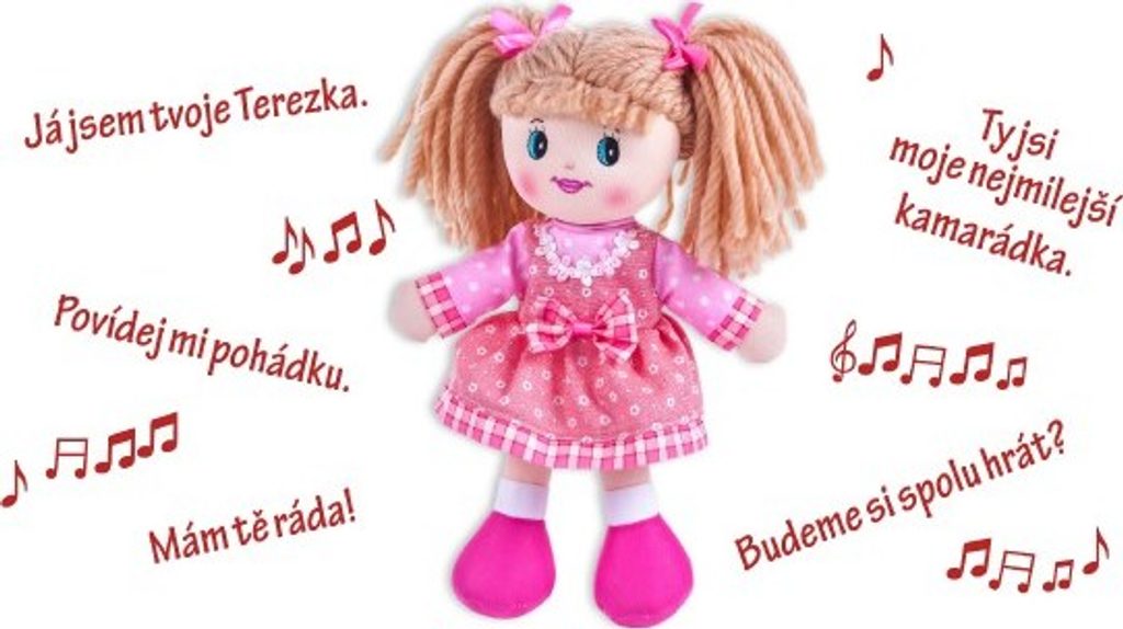 Hadrová panenka Terezka po zmáčknutí bříška povídá: "Mám Tě ráda, Povídej mi pohádku, Já jsem tvoje Terezka, Ty jsi moje nejmilejší kamarádka, Budeme si spolu hrát?..."