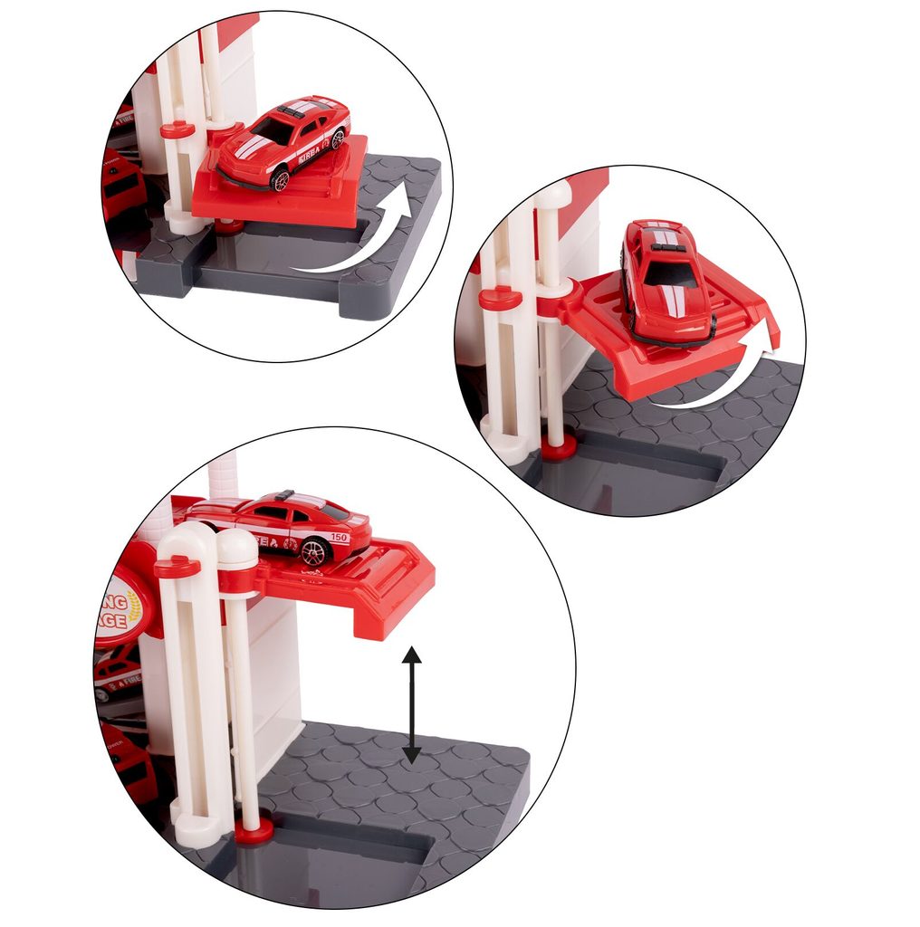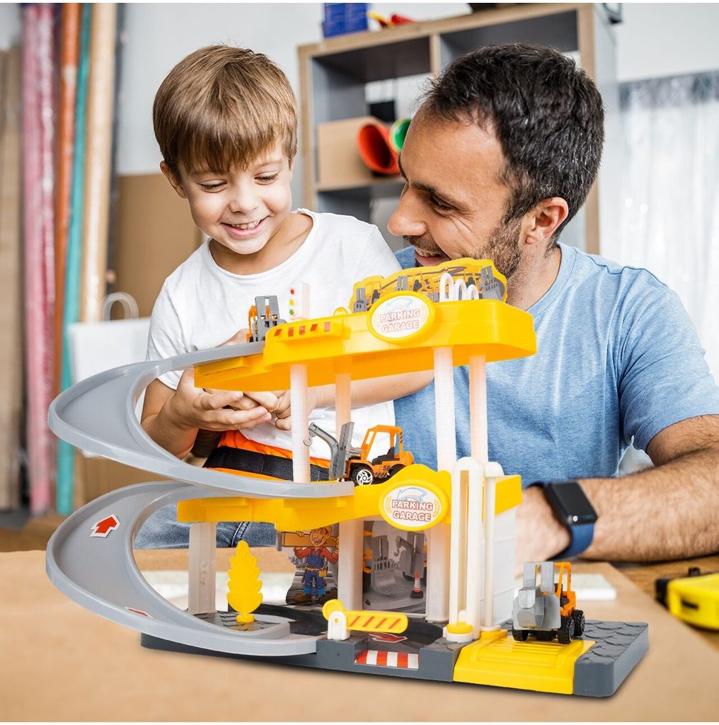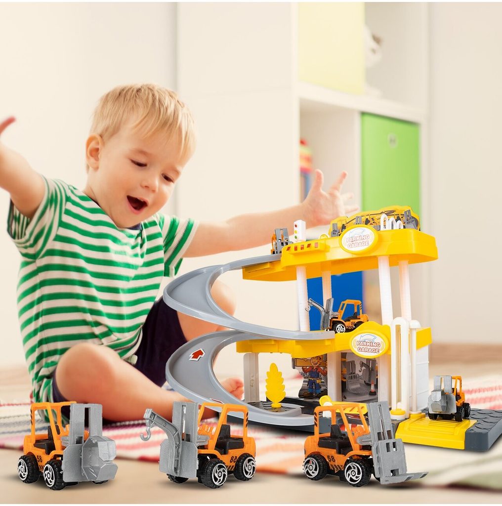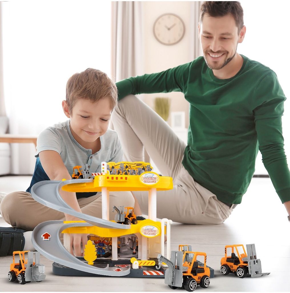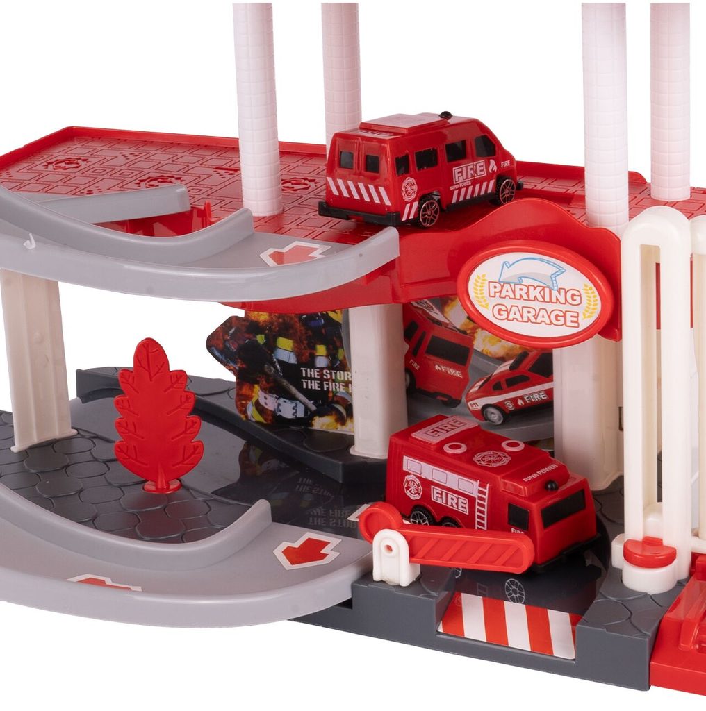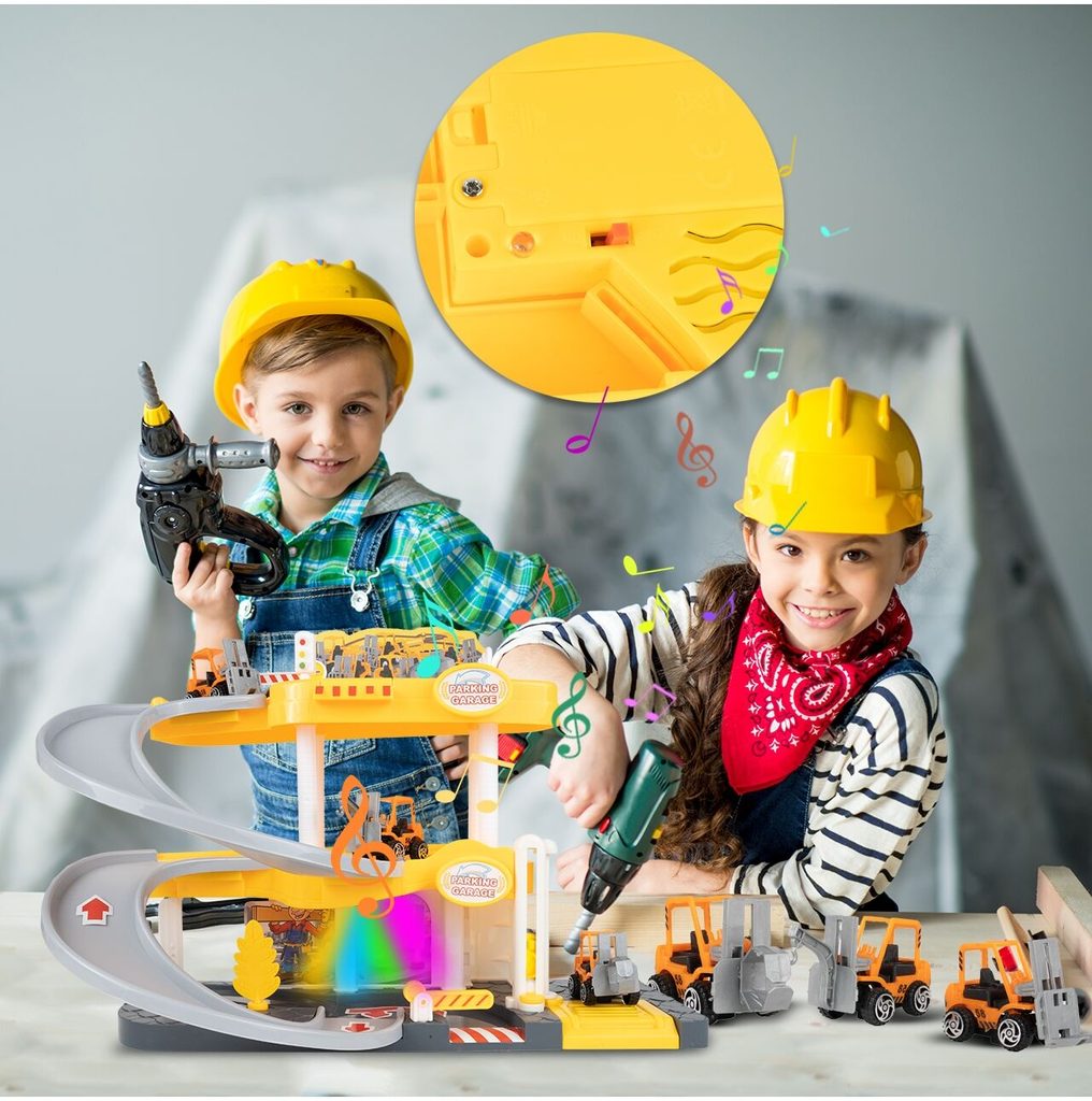Dětská garáž se 3 stavebními stroji a příslušenstvím Construction Parking. Podlaží jsou propojena sjížděcí dráhou. Garáž má ve výbavě modul na baterie, který vydává zvuky a osvětluje první podlaží. V garáži jsou umístěny dopravní značky, závora a nechybí ani samolepky. Mladý motoristický nadšenec zde nalezne vše co potřebuje. Je vyrobena z plastu bez ostrých hran a určena pro děti od 3 let.