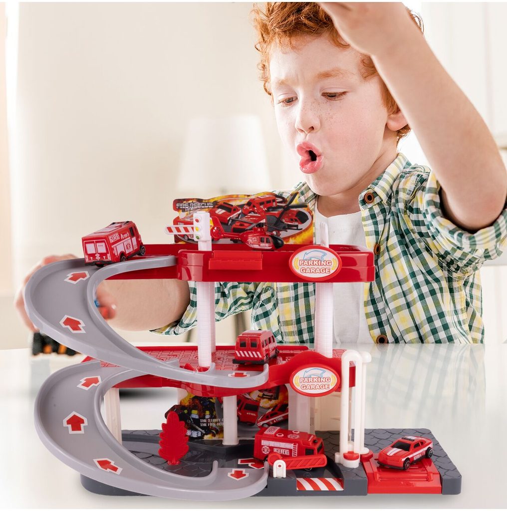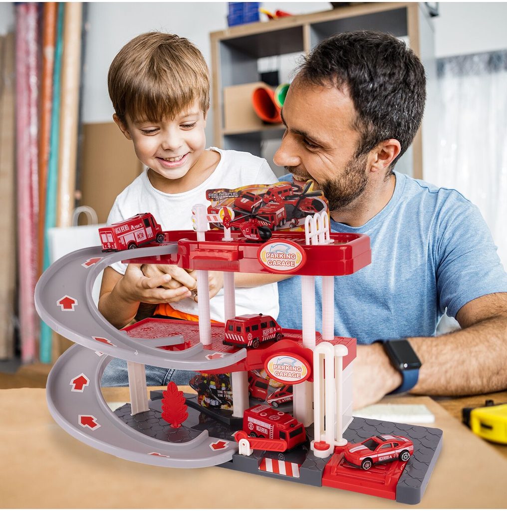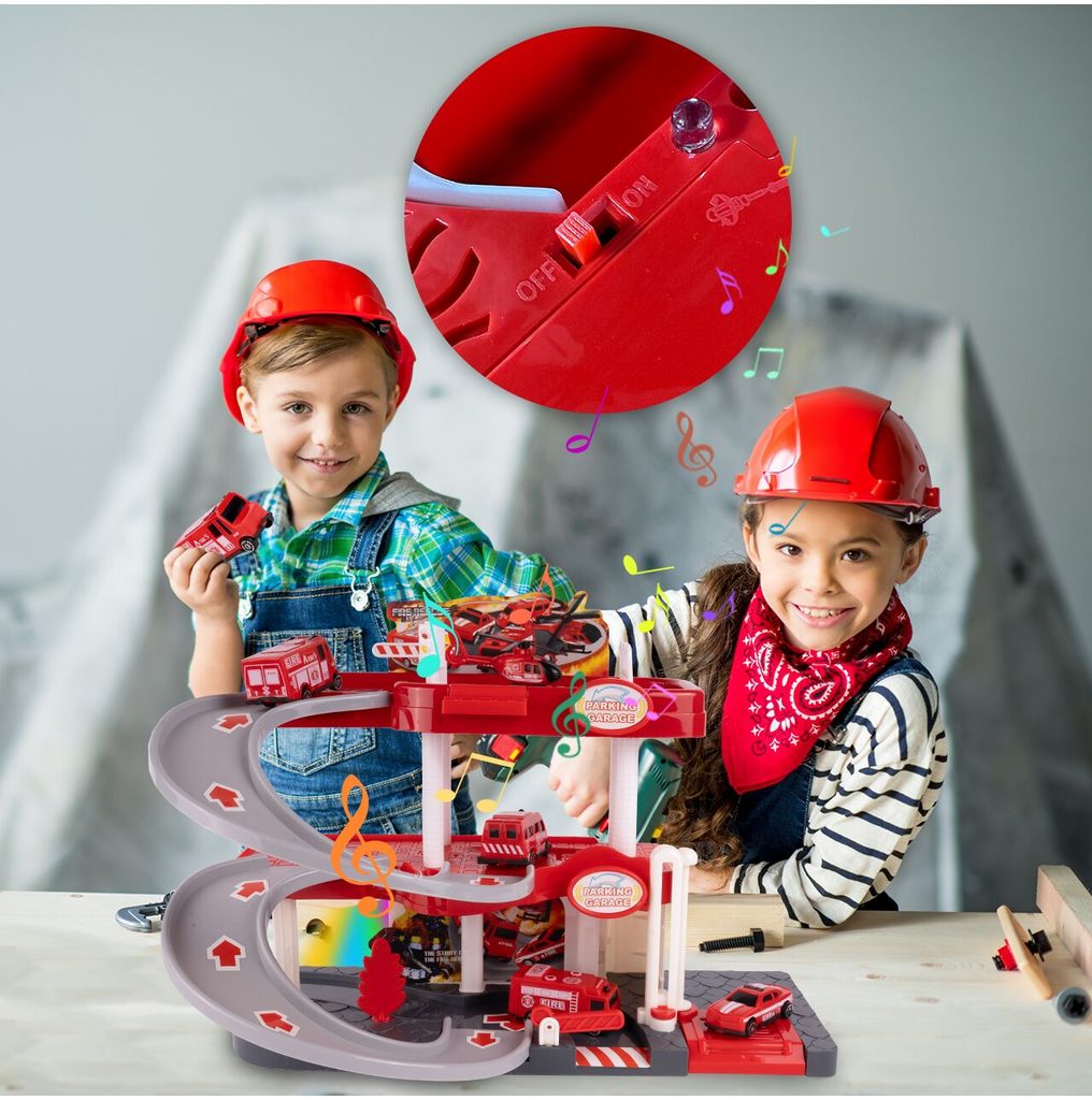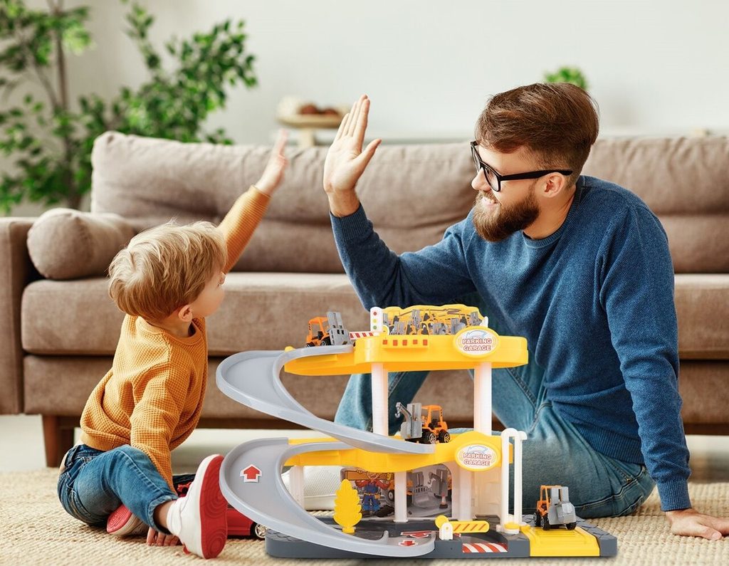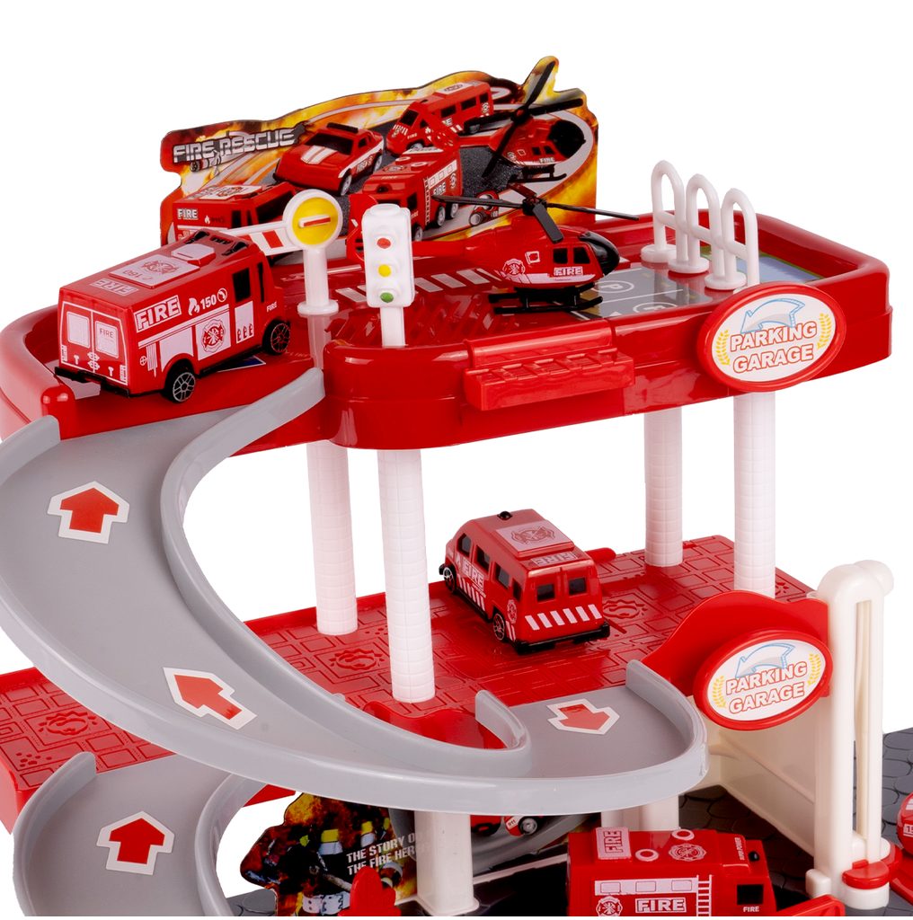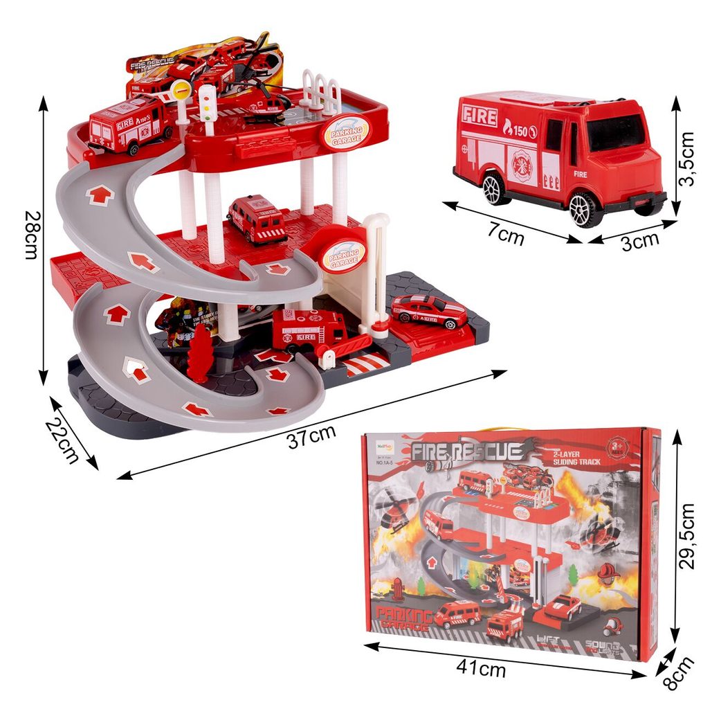 Dětská garáž se 3 stavebními stroji a příslušenstvím Construction Parking. Podlaží jsou propojena sjížděcí dráhou. Garáž má ve výbavě modul na baterie, který vydává zvuky a osvětluje první podlaží. V garáži jsou umístěny dopravní značky, závora a nechybí ani samolepky. Mladý motoristický nadšenec zde nalezne vše co potřebuje. Je vyrobena z plastu bez ostrých hran a určena pro děti od 3 let.
