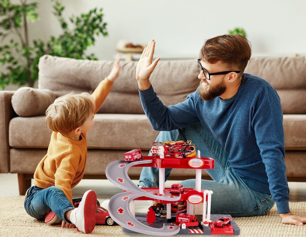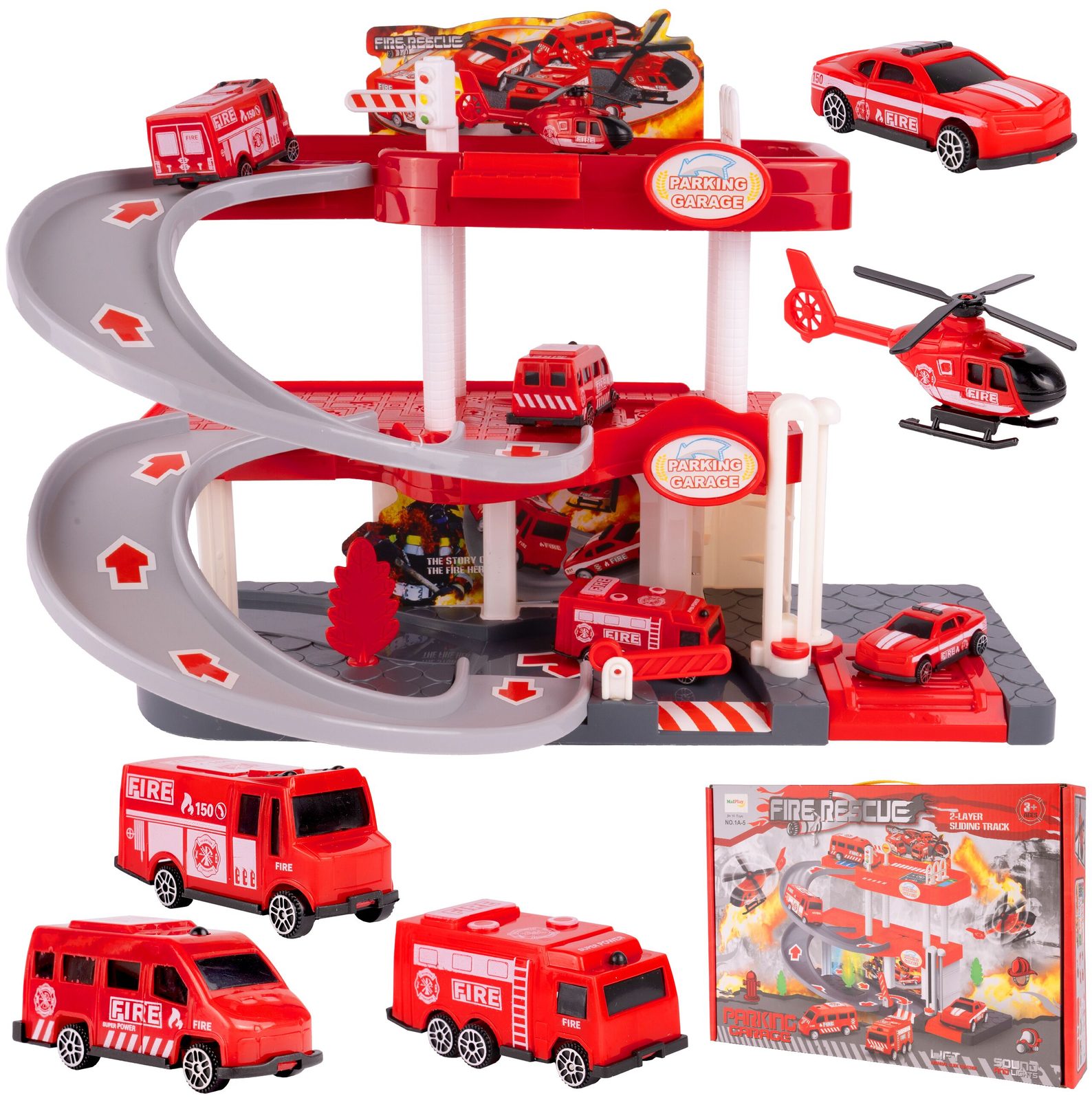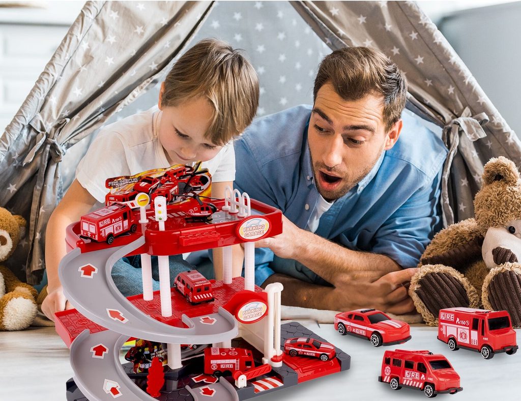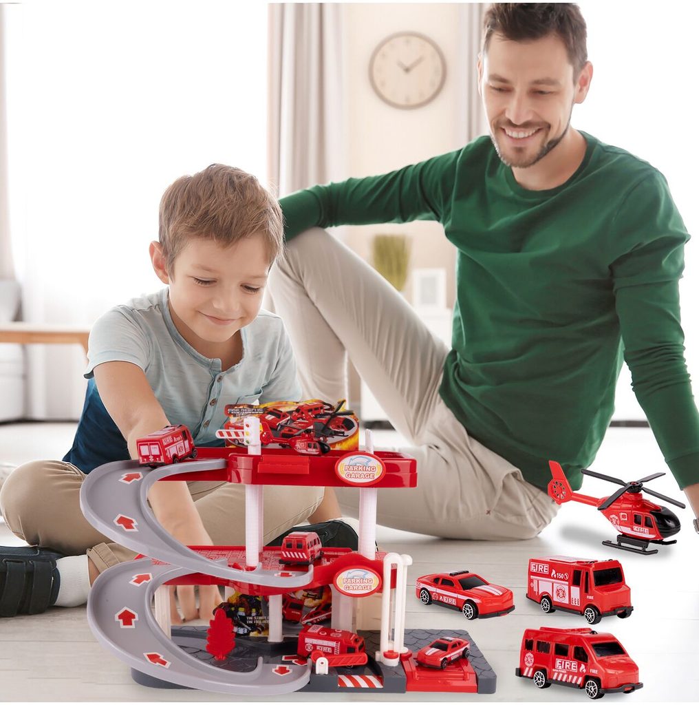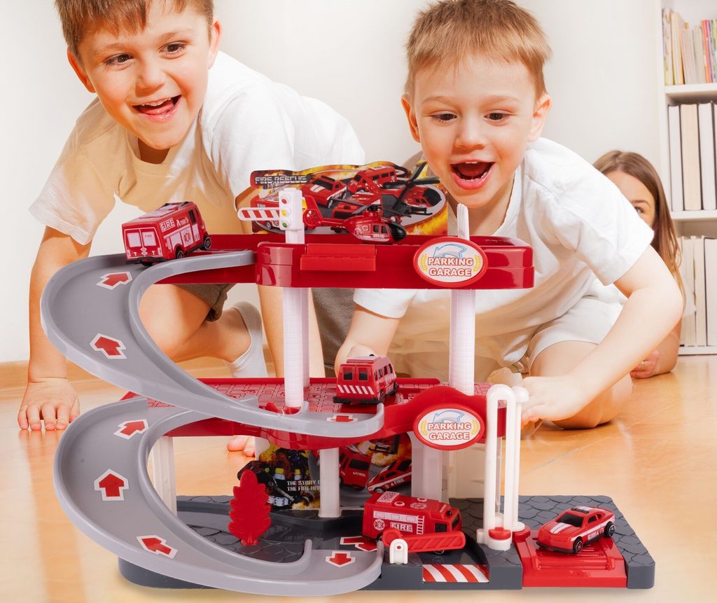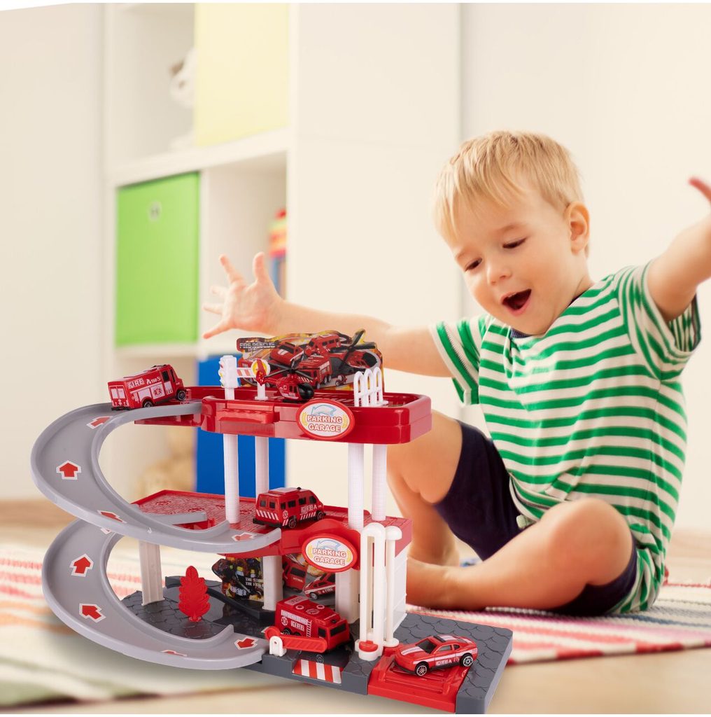 Dětská garáž se 3 stavebními stroji a příslušenstvím Construction Parking. Podlaží jsou propojena sjížděcí dráhou. Garáž má ve výbavě modul na baterie, který vydává zvuky a osvětluje první podlaží. V garáži jsou umístěny dopravní značky, závora a nechybí ani samolepky. Mladý motoristický nadšenec zde nalezne vše co potřebuje. Je vyrobena z plastu bez ostrých hran a určena pro děti od 3 let.