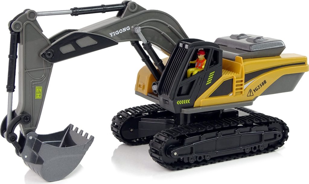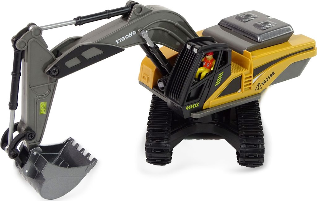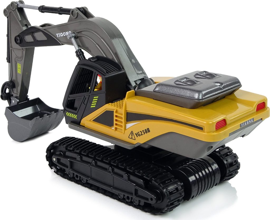 Bagr je vyroben v barvách typických pro stavební vozidla. Vozidlo má gumový pásový pohon, který si na skutečné stavbě poradí s různými povrchy - nejen zcela hladkými.
