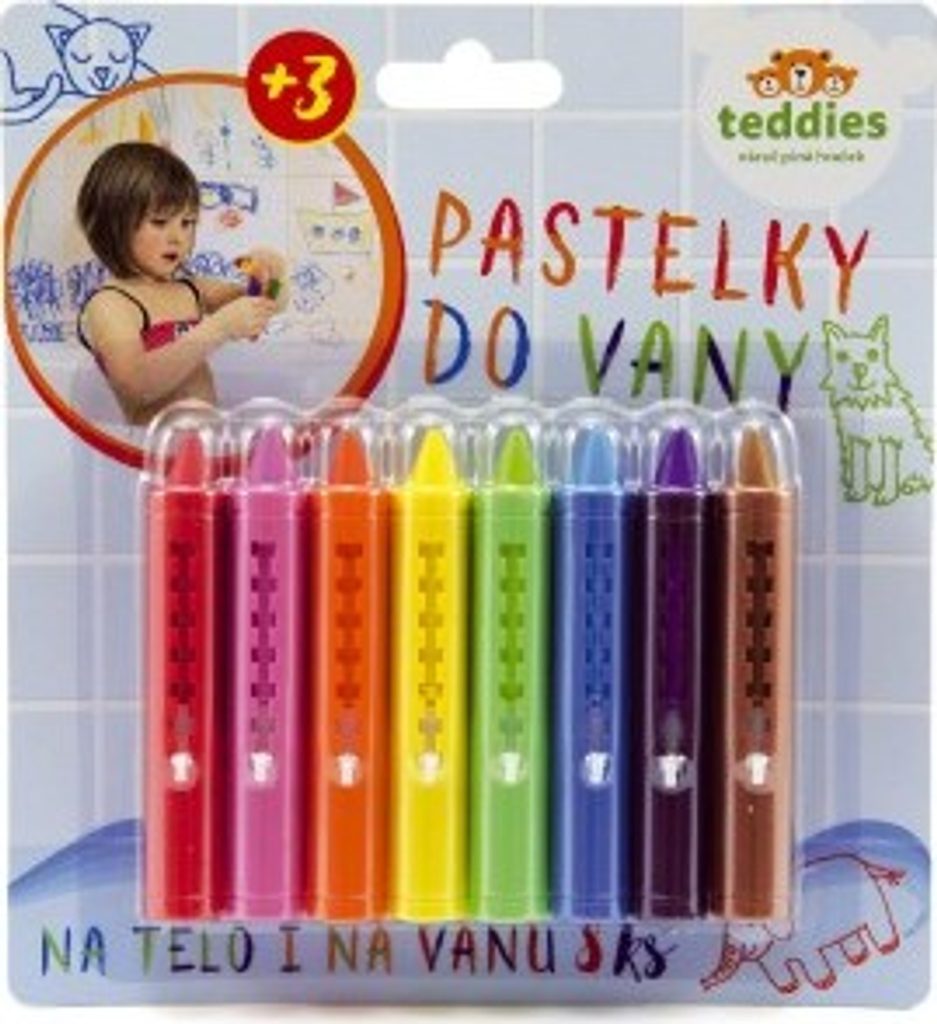 S pastelkami do vany se vaše koupelna promění každý den v jiný svět. Malují na vanu i obklady a děti si s nimi užijí moře legrace. Mohou vytvořit hotová umělecká díla a maminky se nemusí obávat, protože tyto pastelky jdou lehce smýt. Jsou zcela bezpečné, netoxické a hypoalergenní. Sada obsahuje 8 pastelek.