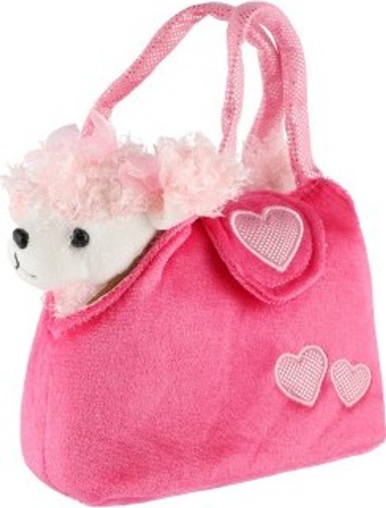 Krásný módní doplněk pro mladé slečny. Kabelka je vyrobena z kvalitního plyše a uvnitř najdete pejska. Ideální na cestování kamkoli! Pejska můžete kdykoli z kabelky vyndat. Velikost pejska: 19 cm. Rozměr kabelky: 20 x 19 x 7 cm. Vhodné pro děti od 3 let