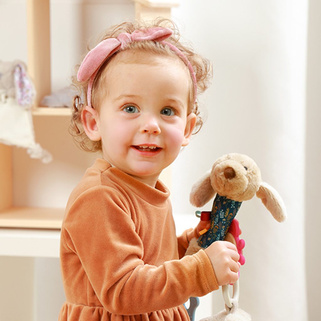 Pejsek má také praktické kousátko, které pomůže vaší ratolesti v náročném období prořezávání zoubků.