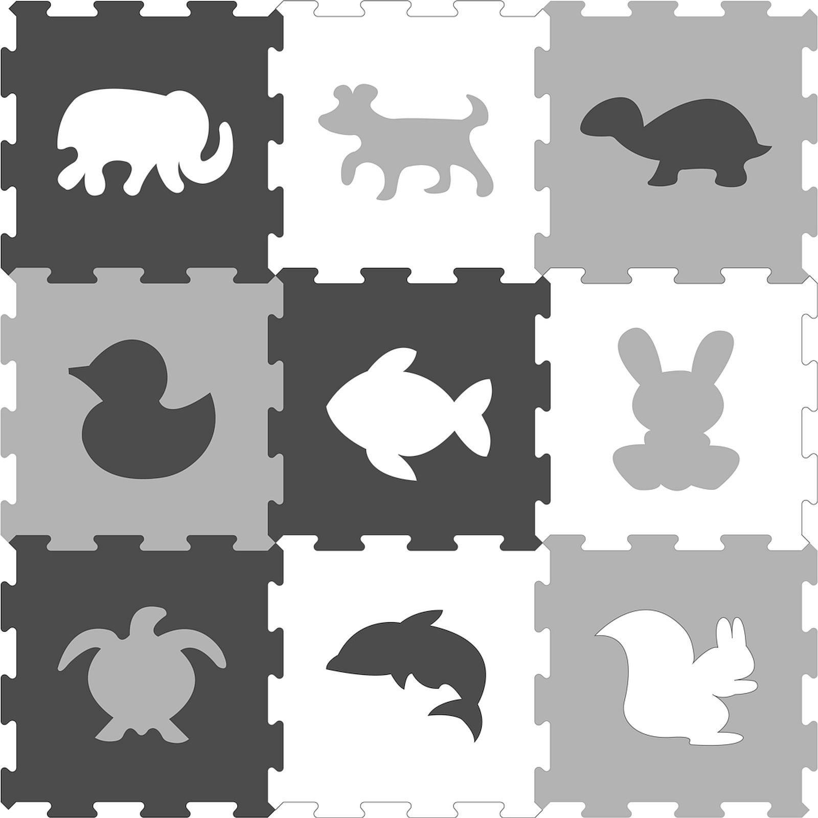 Tříbarevná pěnová podložka - černá, bílá a šedá, lze použít jako koberec i jako…