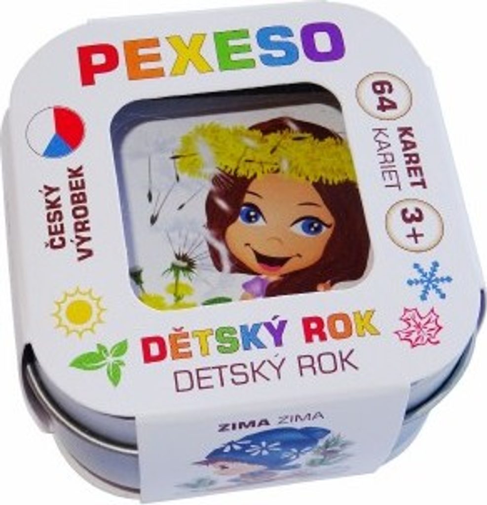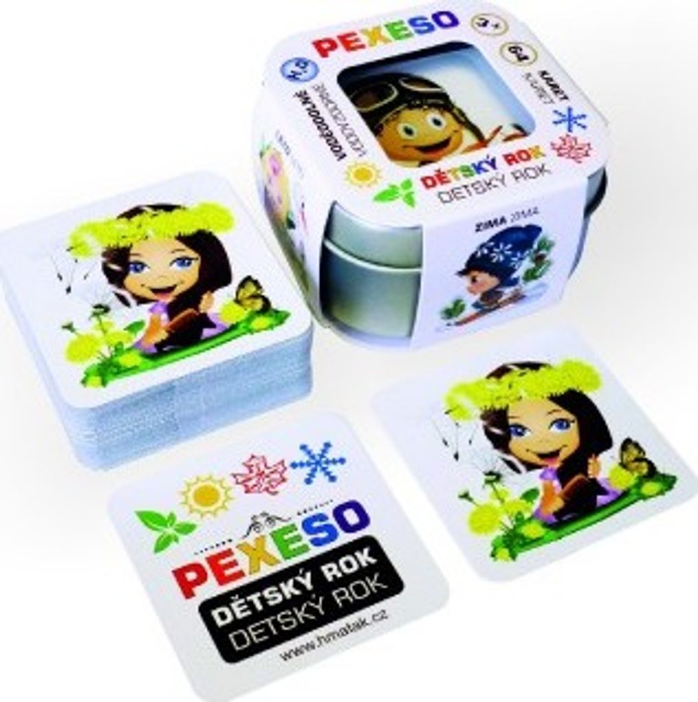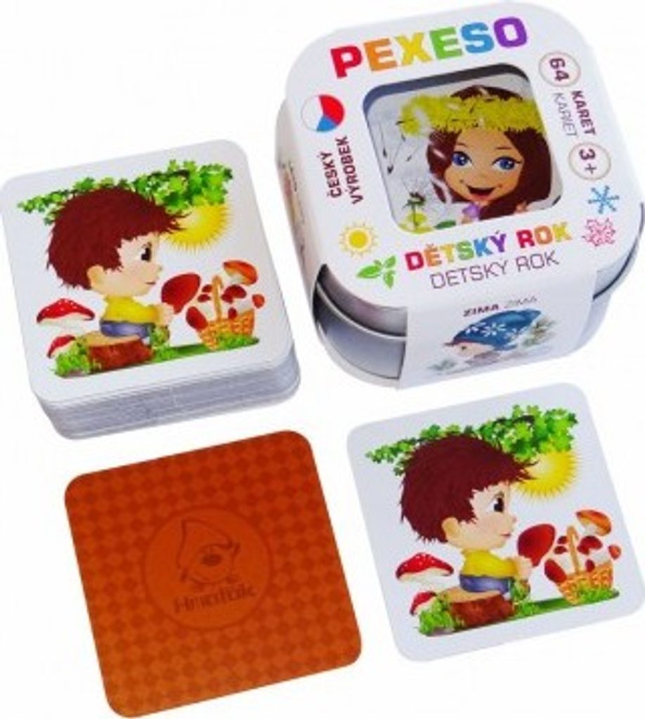 Pexeso se zamíchá, a rozloží se na stůl. Hráči postupně obracejí obrázky, když hráč najde dva stejné obrázky, může si pexeso vzít. Cílem hry je nalézt co nejvíce dvojic s obrázky různých činností dětí během roku. Naleznete zde například sbírání hub, příchod sv. Mikuláše, opékání buřtů, stavění sněhuláka, nebo lyžování aj. U dětí se projevuje soutěživost a trénují paměť.V balení naleznete celkem 64 voděodolných dvojic. Pexeso je baleno v kovové krabičce.